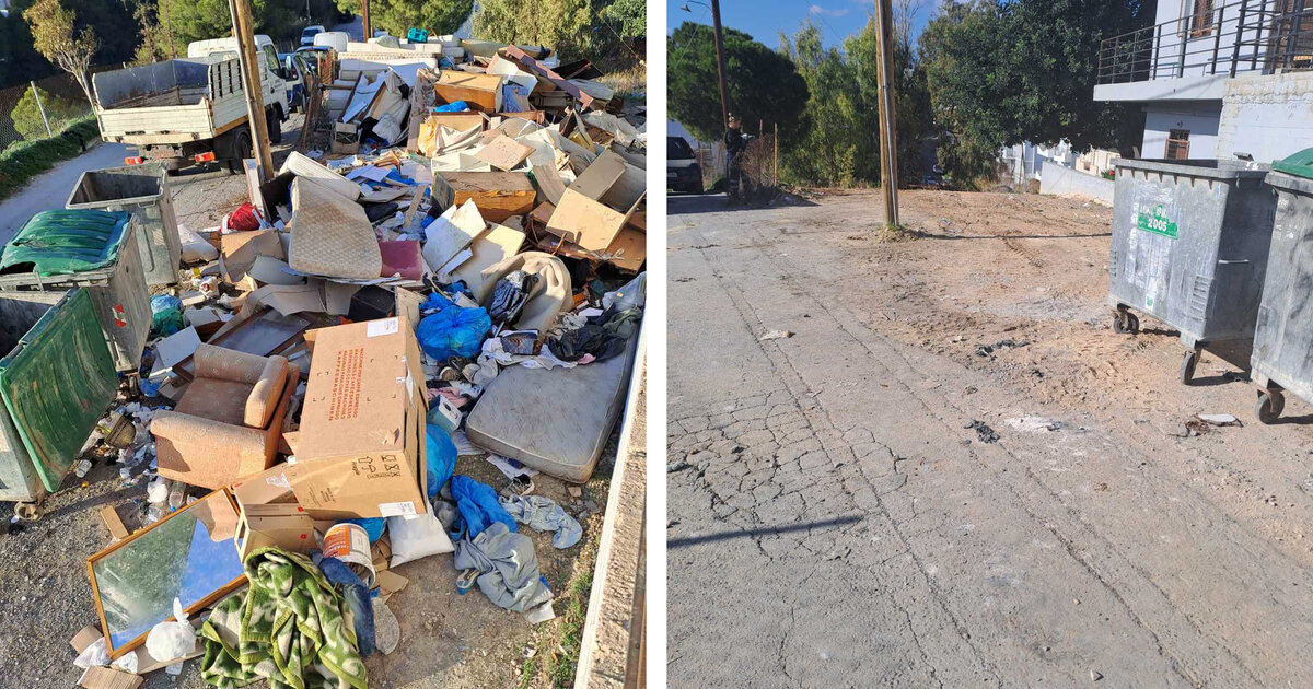 Όπως αναφέρεται, τα μπάζα και τα ογκώδη αντικείμενα απομακρύνθηκαν, ο υπαίτιος εντοπίστηκε και του επιβλήθηκε το προβλεπόμενο πρόστιμο.