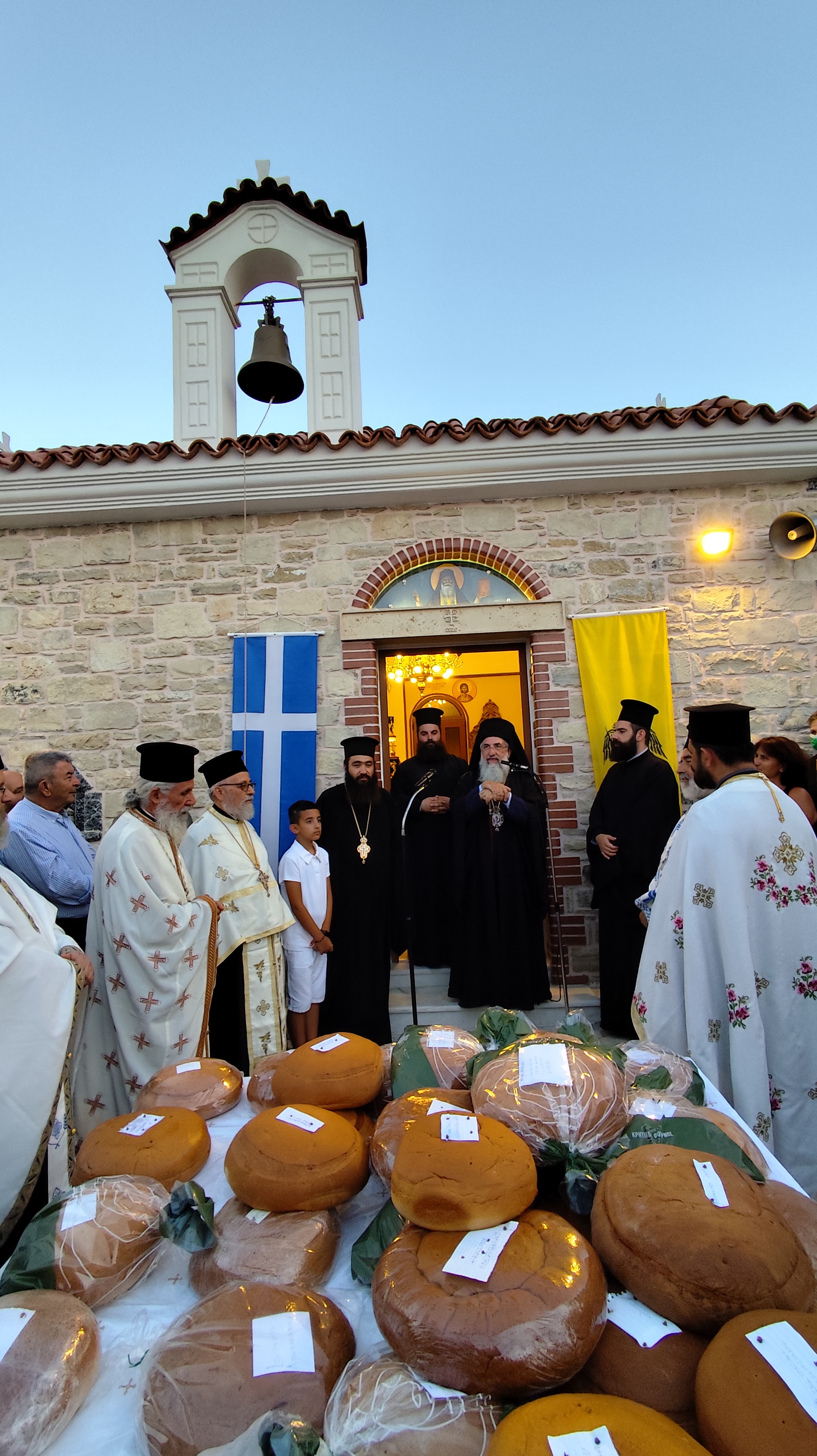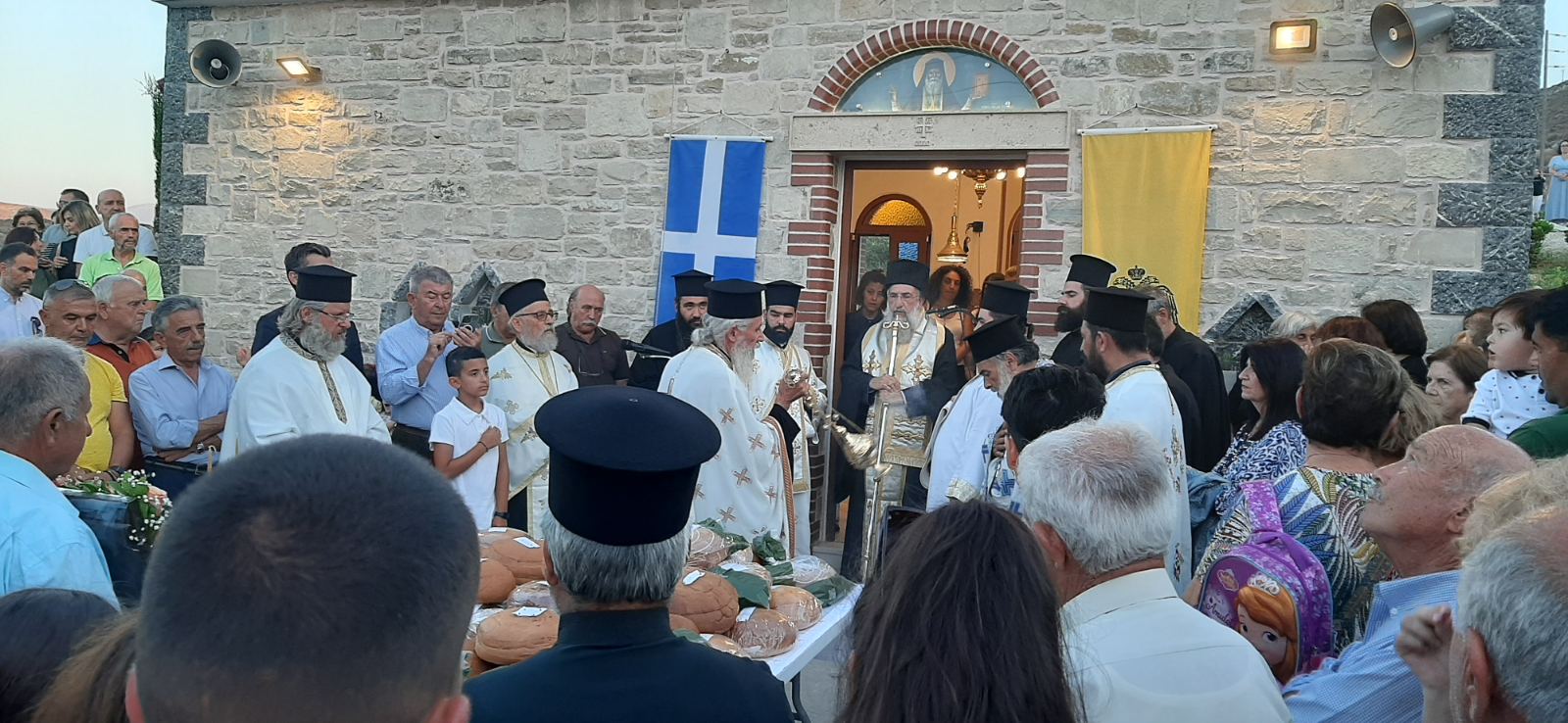 Με αισθήματα πνευματικής χαράς και συγκίνησης τελέσθηκε στις 11 Ιουλίου 2024 ο Αγιασμός των Θυρανοιξίων του Νεόδμητου Ιερού Ναού των Οσίων και Θεοφόρων Πατέρων ημών Παϊσίου του Αγιορείτου και Πορφυρίου του Καυσοκαλυβίτου της Ενορίας Γουρνών Πεδιάδος, από τον Σεβασμιώτατο Αρχιεπίσκοπο Κρήτης κ.κ. Ευγένιο.