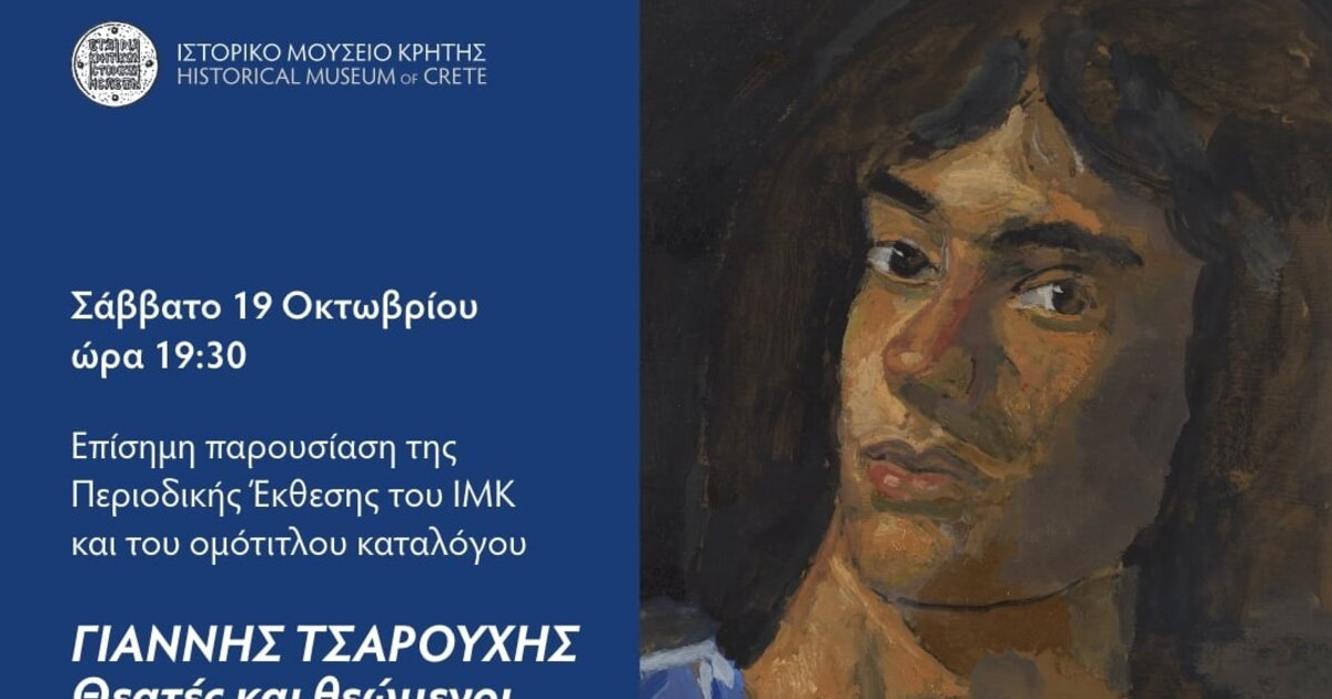 Η Εταιρία Κρητικών Ιστορικών Μελετών διογανώνει στο Ιστορικό Μουσείο Κρήτης, αύριο Σάββατο 19/10/2024 στις 19:30 το απόγευμα. στην επίσημη παρουσίαση της Περιοδικής Έκθεσης και του ομότιτλου καταλόγου ΓΙΑΝΝΗΣ ΤΣΑΡΟΥΧΗΣ | Θεατές και θεώμενοι, με ζωγραφικά έργα του διάσημου καλλιτέχνη από τη Συλλογή Σύγχρονης Τέχνης Ζαχαρία Γ. Πορταλάκη.