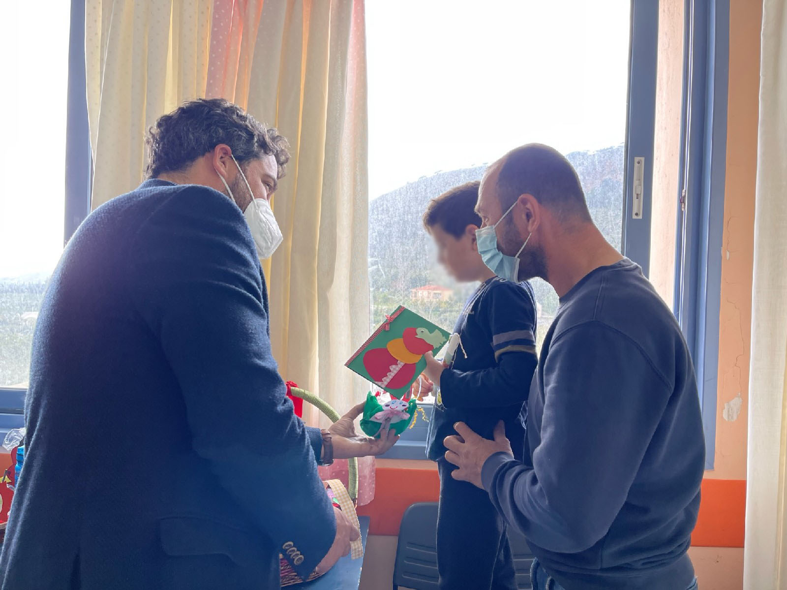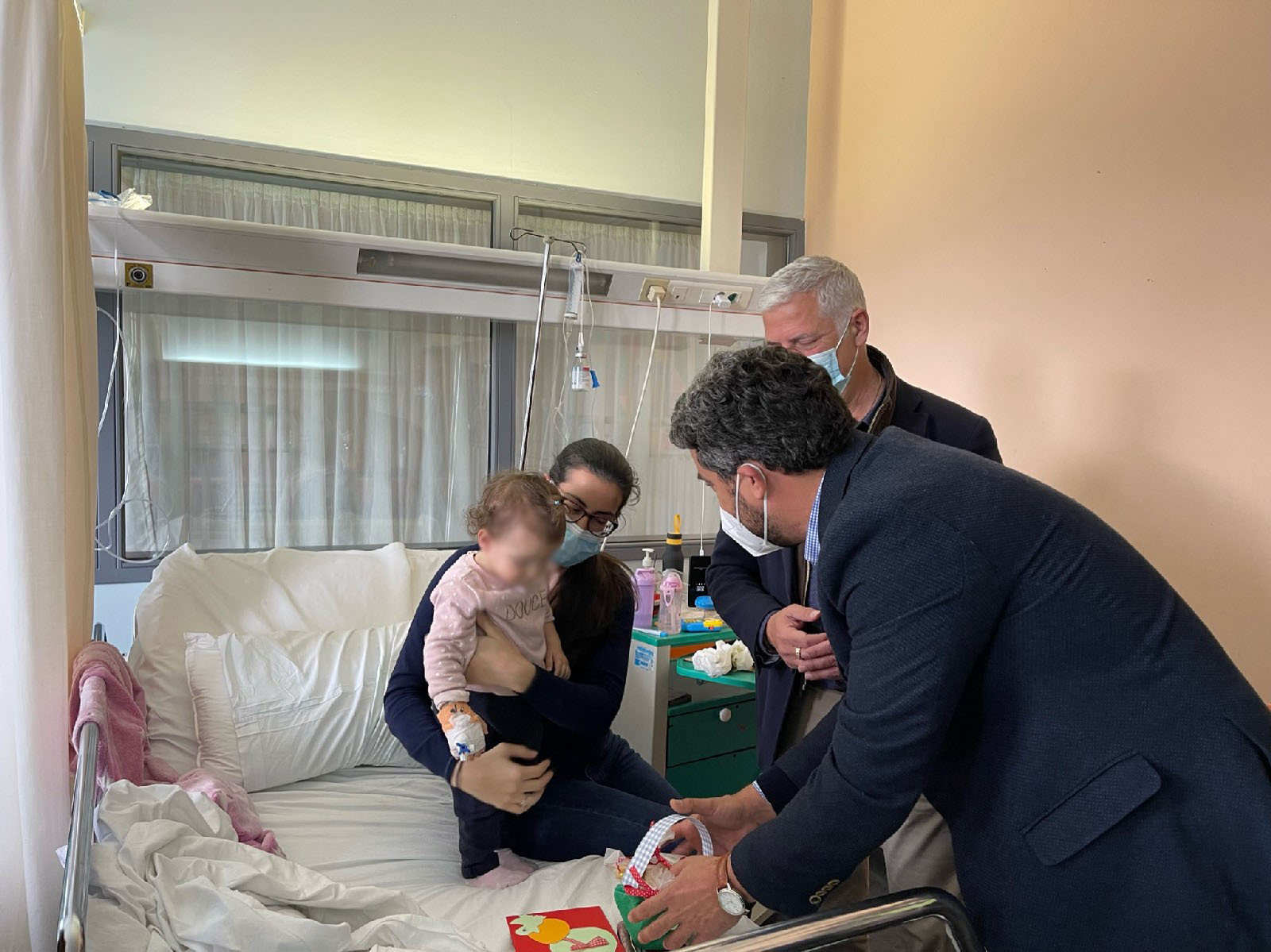 Ο Δήμαρχος Χανίων, επισκέφθηκε τα παιδιά που νοσηλεύονται και τους προσέφερε χειροποίητες λαμπάδες, κάρτες και κουλουράκια που είχαν ετοιμάσει οι ηλικιωμένοι των ΚΑΠΗ και τα παιδιά των Κέντρων Δημιουργίας του ΔΟΚΟΙΠΠ, με την ευχή για ταχεία ανάρρωση.