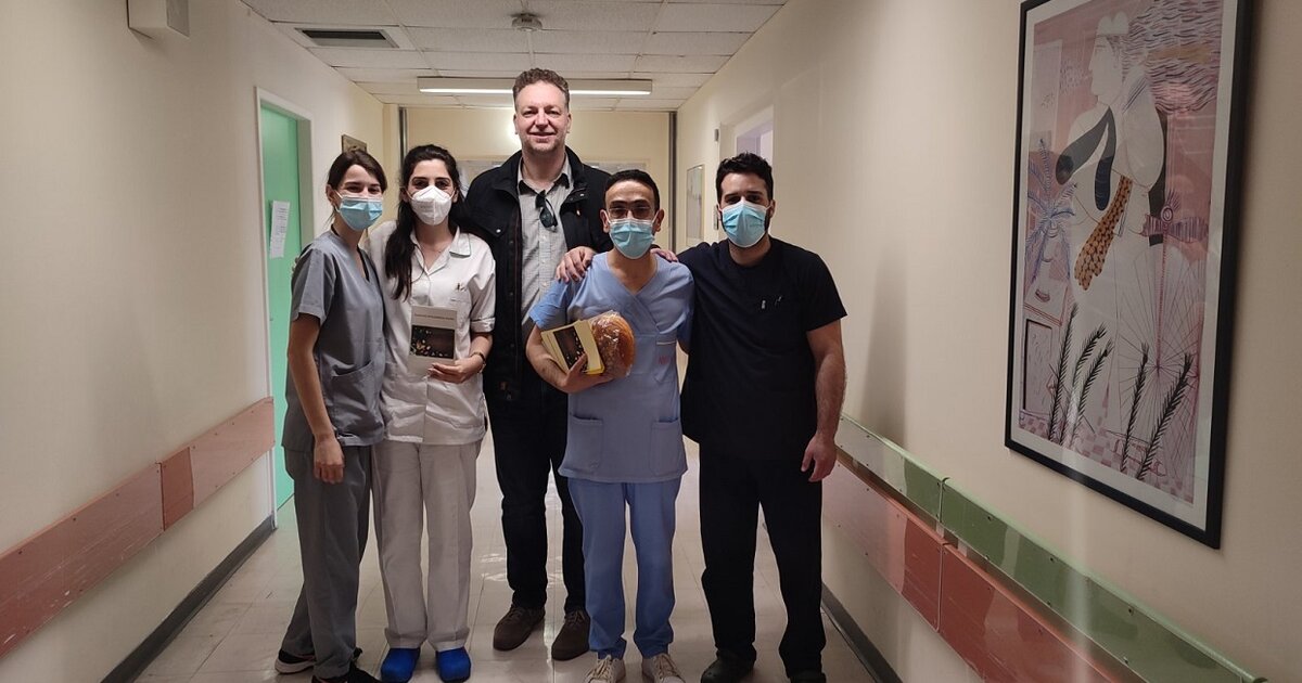 "Αντάλλαξαν ευχές με τους εργαζόμενους, που σήμερα, την ημέρα του Πάσχα, βρίσκονται μακριά από τις οικογένειες τους, δίνοντας τη μάχη (όπως κάνουν όλο το χρόνο) για την υγεία των συνανθρώπων μας. Ευχήθηκαν γρήγορη ανάρρωση στους ασθενείς".