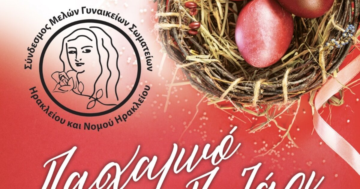 Το καθιερωμένο Πασχαλινό Παζάρι του “Συνδέσμου Μελών Γυναικείων Σωματείων Ηρακλείου και Ν. Ηρακλείου” οργανώνεται και φέτος τη Μεγάλη Πέμπτη 13/4/2023 από τις 9.00 το πρωί, στο Αίθριο της Λότζια, στο Ηράκλειο.