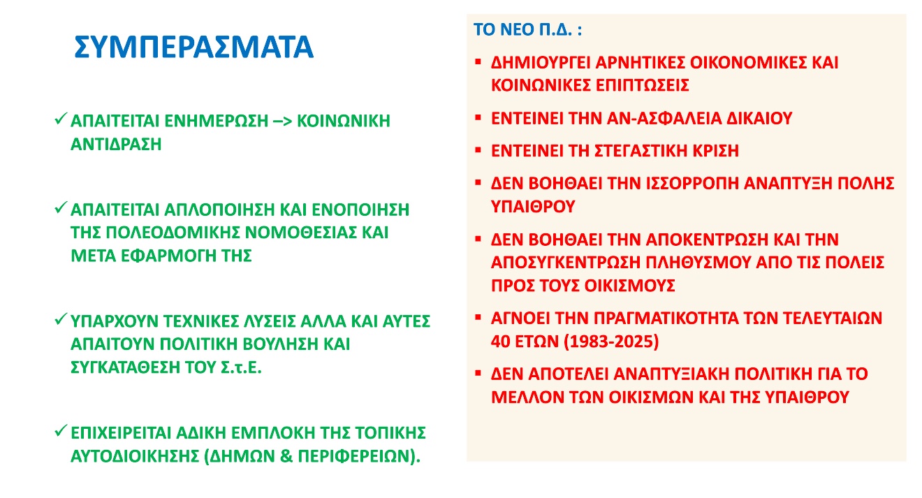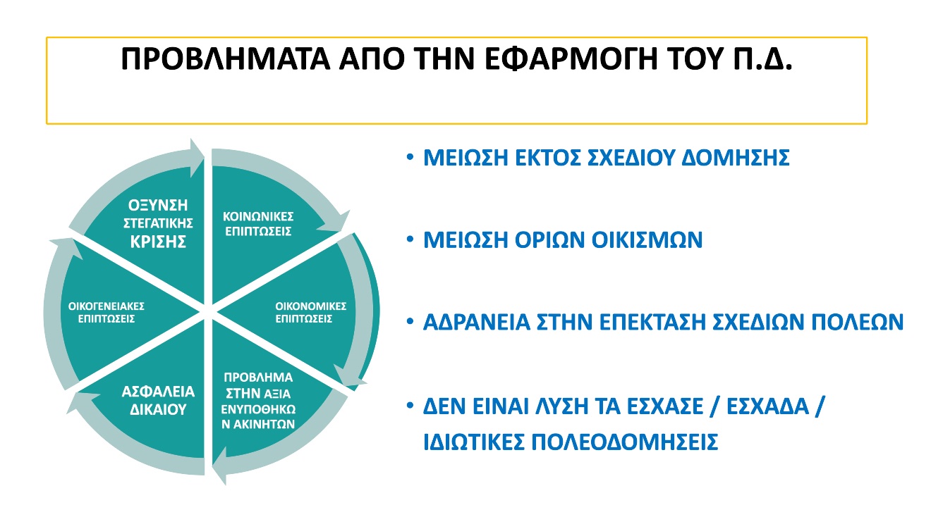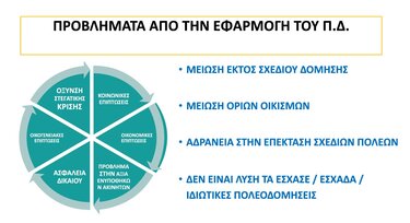 Υπενθυμίζεται ότι οι εκπρόσωποι των τοπικών φορέων έχουν εκφράσει το προηγούμενο διάστημα την άμεση ανάγκη για απόσυρση του διατάγματος, προκειμένου να προστατευθούν τα δικαιώματα των κατοίκων των μικρών οικισμών και να διασφαλιστεί η βιώσιμη ανάπτυξη της υπαίθρου. Επισημαίνουν ότι οι αλλαγές που προωθούνται θα οδηγήσουν σε αποδυνάμωση των τοπικών κοινωνιών και να δημιουργήσουν σοβαρά προβλήματα στην ιδιοκτησία και την οικοδομική δραστηριότητα. Ζητούν δε την άμεση απόσυρση του διατάγματος και την έναρξη διαλόγου για την εξεύρεση λύσεων που θα λαμβάνουν υπόψη τις ιδιαιτερότητες των μικρών οικισμών.