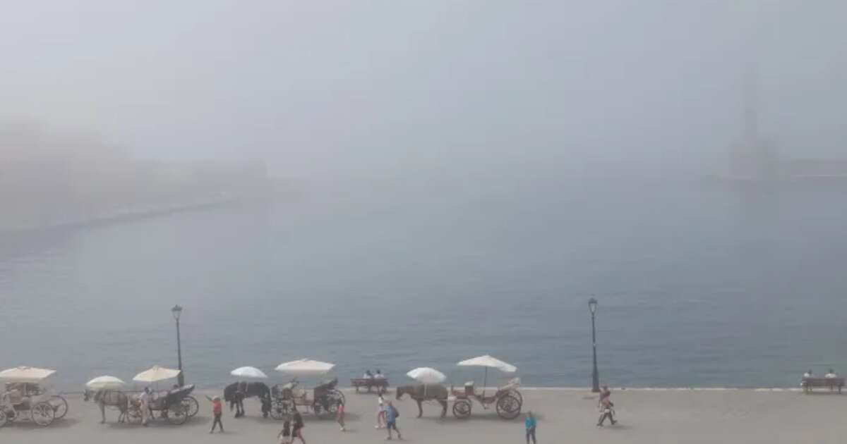 Πέπλο ομίχλης σκέπασε το μεσημέρι τις παράλιες περιοχές των Χανίων, με το φαινόμενο να είναι ιδιαίτερα εντυπωσιακό στην περιοχή του ενετικού λιμανιού, αλλά και σε άλλες περιοχές του νομού.