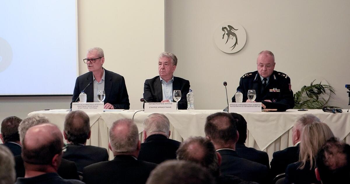 Την εκτίμηση ότι φέτος θα είναι μια δύσκολη περίοδος, σε ό,τι αφορά στην αντιπυρική προστασία στην Κρήτη, λόγω των καιρικών συνθηκών, εξέφρασε από το Ηράκλειο όπου βρίσκεται σήμερα ο Υπουργός Κλιματικής Κρίσης και Πολιτικής Προστασίας Ευάγγελος Τουρνάς o οποίος προήδρευσε συντονιστικής σύσκεψης για την προετοιμασία της αντιπυρικής σεζόν, παρουσία της ηγεσίας του Πυροσβεστικού Σώματος, εκπροσώπων της ΕΛ.ΑΣ, του Λιμενικού Σώματος και Δημάρχων από όλη την Κρήτη.