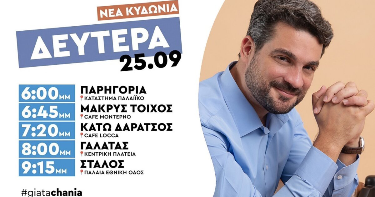 Τη Δευτέρα 25 Σεπτεμβρίου 2023 η ομάδα «Για τα Χανιά» θα περιηγηθεί σε περιοχές της Δημοτικής Ενότητας Νέας Κυδωνίας και συγκεκριμένα: