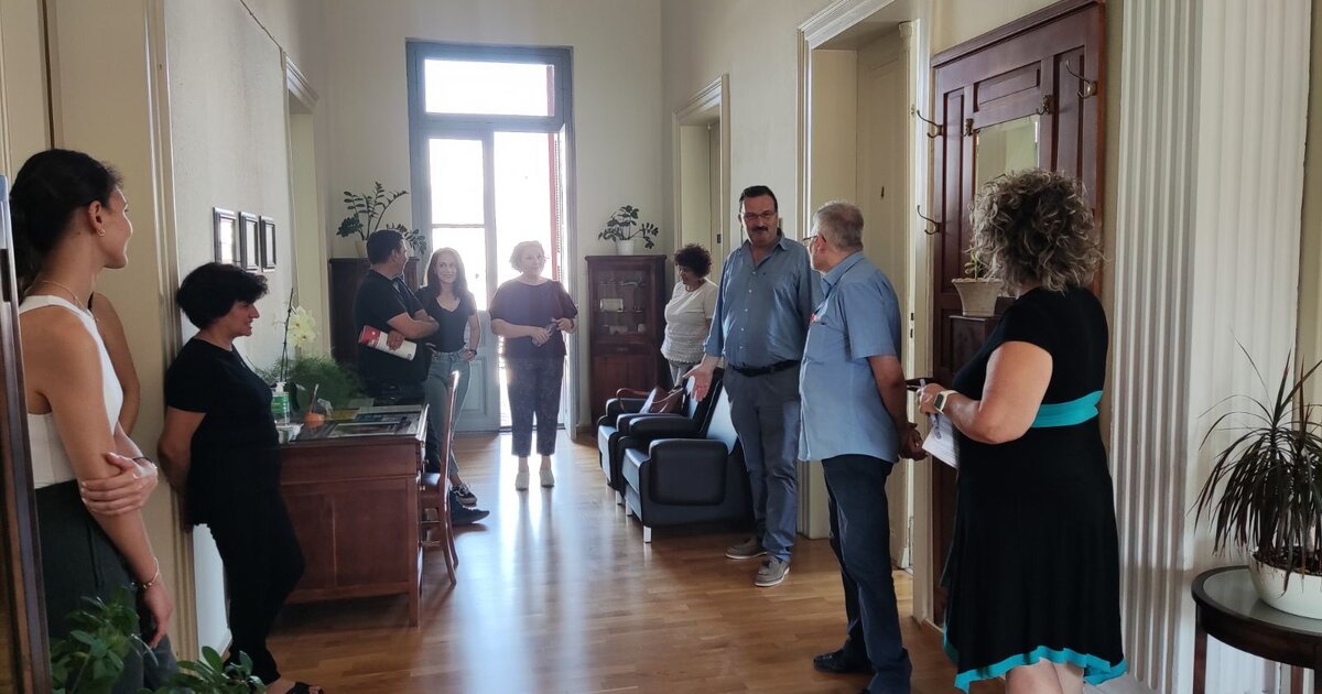 Κλιμάκιο του ΚΚΕ με επικεφαλής τους υποψηφίους βουλευτές στο νομό Χανίων Αλέκο Μαρινάκη και Μίλτο Κλωνιζάκη περιόδευσε στα γραφεία της Υγειονομικής Υπηρεσίας Χανίων, σήμερα Τρίτη 20/6/2023. Το κλιμάκιο απαρτιζόταν και από στελέχη της ΤΕ Χανίων του ΚΚΕ στην Υγεία.