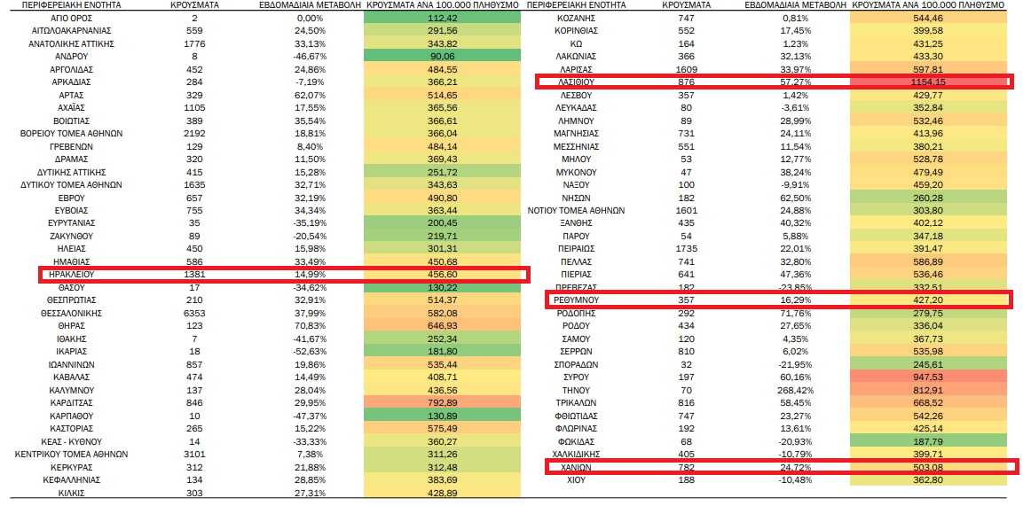 Σε επίπεδο Κρήτης την ίδια χρονική στιγμή καταγράφονται: