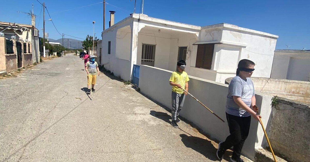 Έτσι, τα παιδιά κλήθηκαν να γίνουν για λίγο τυφλοί και να προσπαθήσουν να περπατήσουν στο χωριό τους. Η δράση έγινε την περασμένη Δευτέρα και οι μαθητές αναρωτήθηκαν πώς γίνεται κανείς να …βρει τον δρόμο του σε μια πολυσύχναστη πόλη με πολλούς και συχνά αδιευκρίνιστους ήχους.