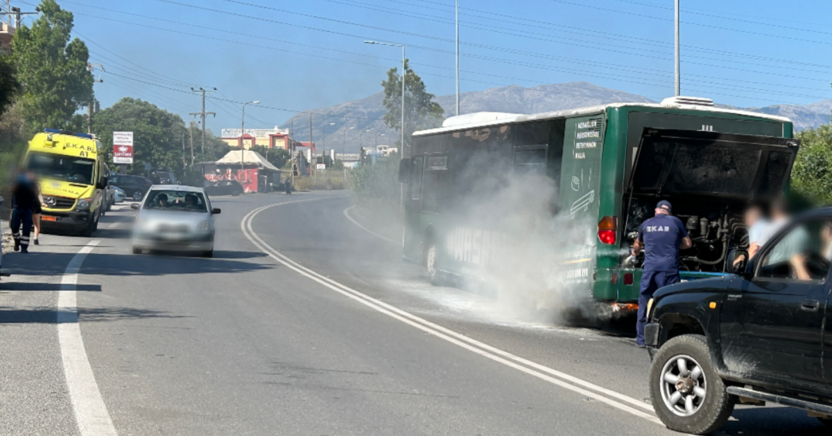 Πρωινός συναγερμός στην Πυροσβεστική Υπηρεσία Ηρακλείου, μετά από περιστατικό φωτιάς σε εν κινήσει αστικό λεωφορείο στο Ηράκλειο.