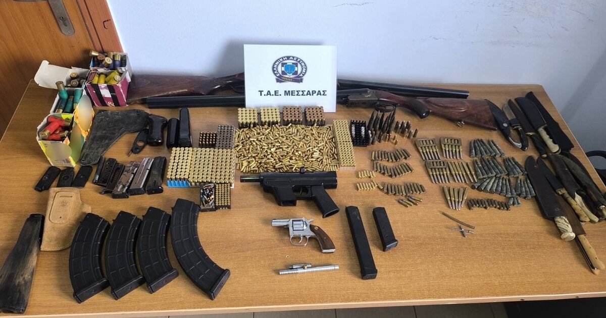 Πιστόλια, υποπολυβόλο, μαχαίρια κι εκατοντάδες φυσίγγια στη Μεσσαρά - Τι έβγαλε ο αστυνομικός έλεγχος