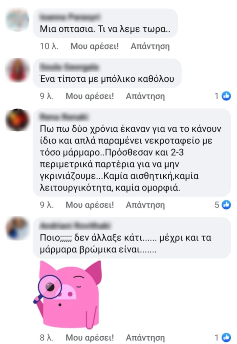 Την ίδια στιγμή δε λείπει η οξεία κριτική για επιμέρους ζητήματα που προκαλούν ερωτηματικά για την αρτιότητα (ή την προχειρότητα;) των εργασιών. Χαρακτηριστικό είναι το παράδειγμα του άκρου της πλατείας, που δεν κλείνει με τριγωνικές πλάκες αλλά με ... τσιμέντο, όπως επισημαίνει o Λ.Β., αναγνώστης του Cretalive.
