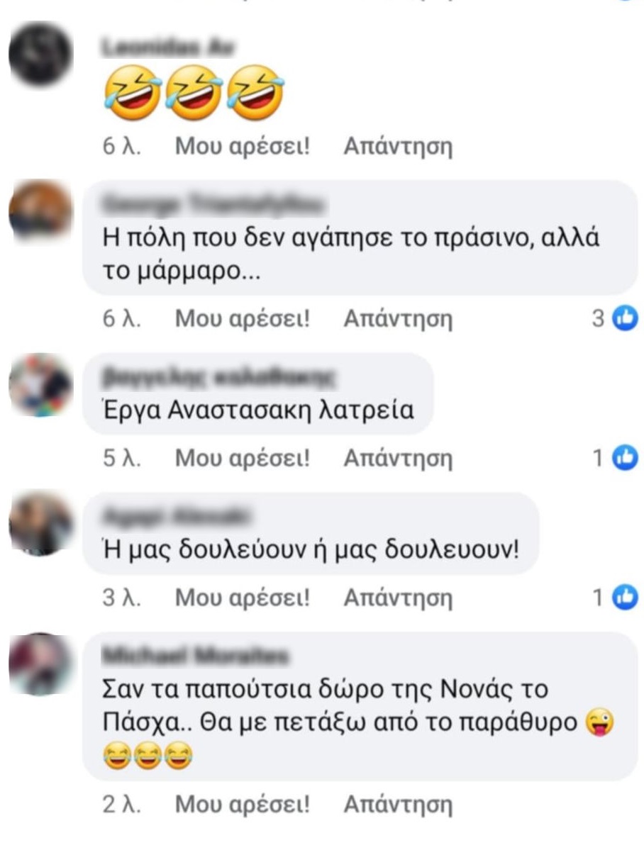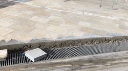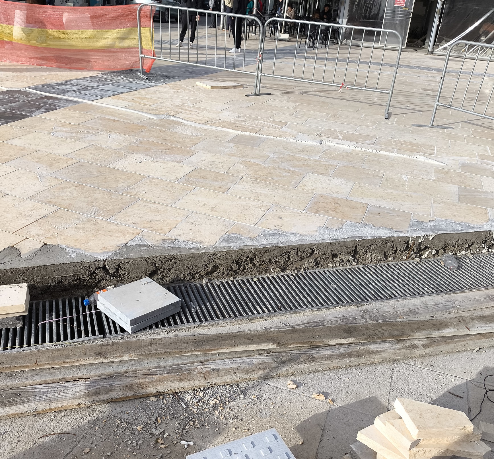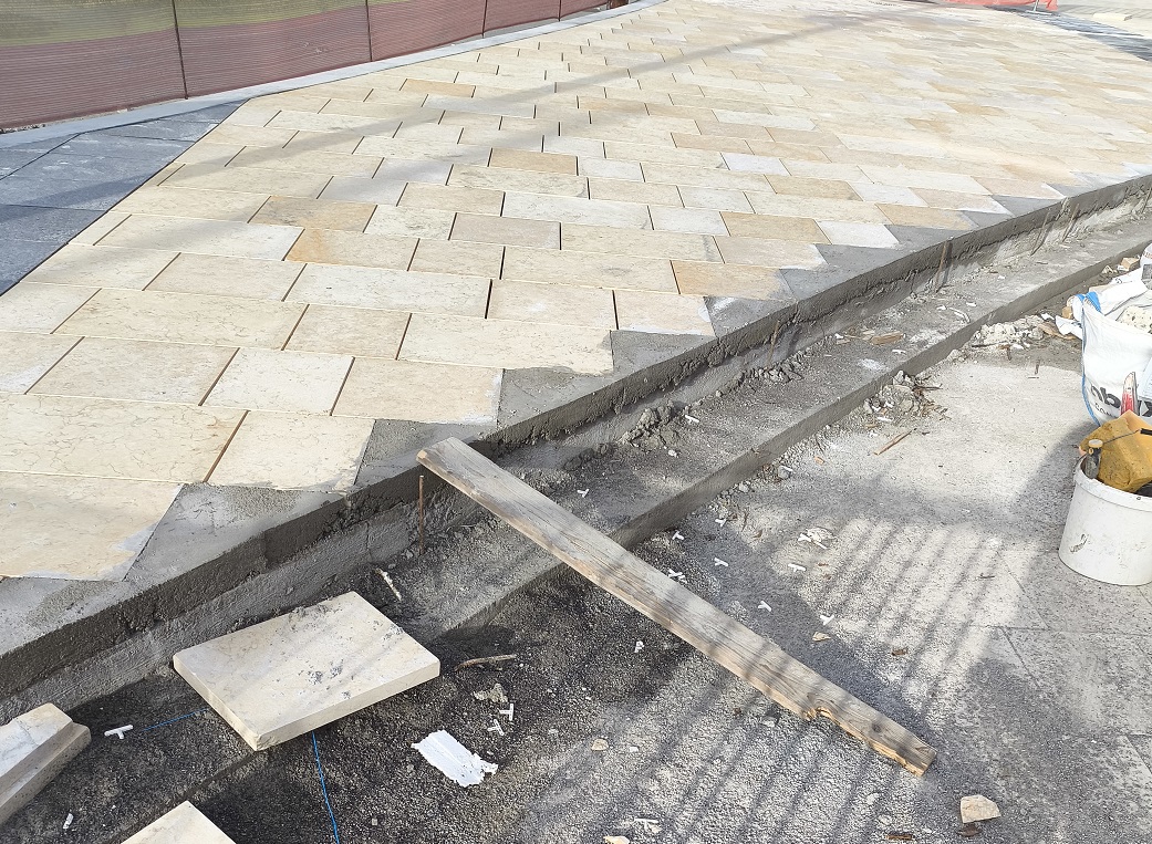 Όπως σημειώνεται, τα άκρα συμπληρώθηκαν με τσιμέντο το οποίο χθες (31/03/25) βάφτηκε άσπρο! "Πρώτον, το τσιμέντο είναι πολύ πιο μαλακό και εύθραυστο από τις πλάκες και όταν σπάσει (γιατί θα σπάσει σύντομα) θα εξέχουν οι γωνίες από τις πλάκες σαν ξυράφια. Δεύτερον, δεν έλεγξε κανένας πριν βγάλουν τα προστατευτικά και παραδώσουν σχεδόν όλο το κομμάτι με τη συγκεκριμένη πατέντα; Ποιος το ενέκρινε αυτό το χάλι;" - αναφέρεται χαρακτηριστικά στο σχόλιο του πολίτη.