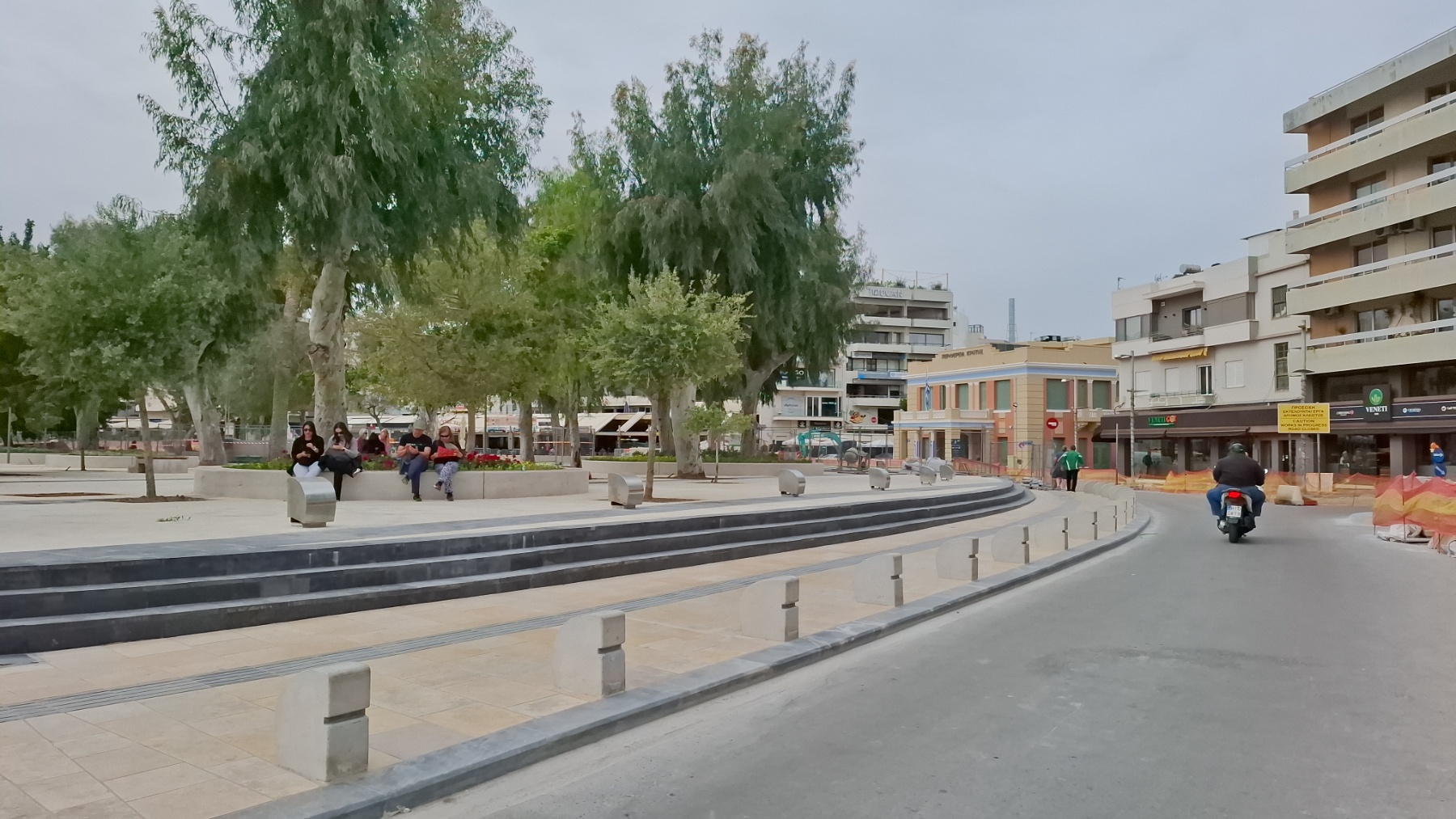 Αν και ο ίδιος κρατάει αποστάσεις ως προς την προτεραιοποίηση της συγκεκριμένης παρέμβασης από την προηγούμενη δημοτική Αρχή τονίζει ότι έγινε ό,τι προβλεπόταν: προστέθηκαν πράσινες νησίδες και αυξήθηκε το πράσινο, χρησιμοποιήθηκαν υλικά για τη μείωση της θερμοκρασίας, αντιολισθητικά, με πολύ καλύτερη υδατοαπορρόφηση, που περιορίζουν το θερμικό φορτίο κ.ά. Ο ίδιος επισήμανε πάντως ότι ο χαρακτήρας μιας πλατείας διαφέρει από αυτόν ενός πάρκου, ενώ τόνισε και τη σημασία της ατομικής ευθύνης, διαπιστώνοντας ότι στις λίγες μέρες που το μεγαλύτερο μέρος της πλατείας είναι προσβάσιμο, η πλατεία πρόλαβε και έγινε ήδη βρώμικη!