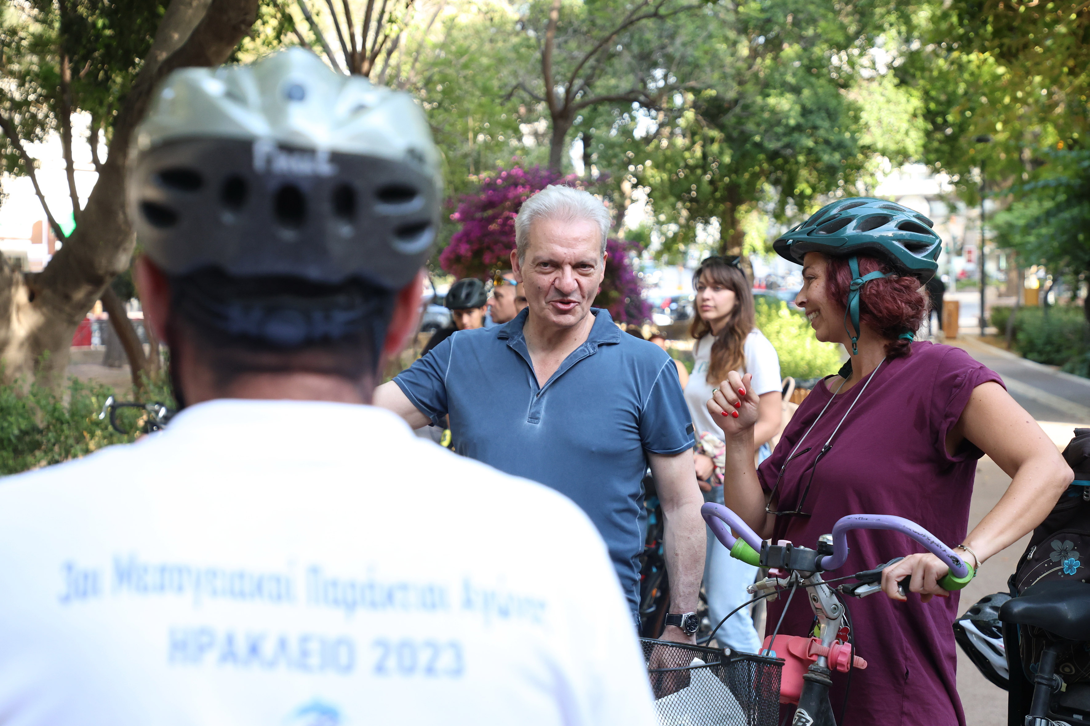 Εκεί ο Αλέξης Καλοκαιρινός, αφού τους ευχαρίστησε για την συμμετοχή τους, αναφέρθηκε στο σχεδιασμό του Δήμου που έχει στόχο το Ηράκλειο σταδιακά να γίνει πιο φιλικό για το ποδήλατο και συζήτησε μαζί τους για τις δυσκολίες που αντιμετωπίζουν στις μετακινήσεις τους. Ο Δήμαρχος Ηρακλείου επεσήμανε ότι υπάρχουν οι προϋποθέσεις ώστε να ενισχυθεί η κίνηση με το ποδήλατο, αναφέροντας ως παράδειγμα την ολοκλήρωση κατασκευής του πάρκου Ερυθραίας με τον ποδηλατόδρομο μήκους άνω των 2 χιλιομέτρων, τα Ενετικά Τείχη και την τάφρο στα οποία μετά την παραχώρηση από το Υπουργείο Πολιτισμού θα δημιουργηθούν επίσης διαδρομές πολλών χιλιομέτρων κ.α., καθώς και την ενίσχυση του στόλου ποδηλάτων του Δήμου που διατίθενται στους πολίτες με περισσότερα από 80 ηλεκτρικά ποδήλατα. Τόνισε επίσης ότι οι τελικές παρεμβάσεις που απαιτούνται για τη δημιουργία προϋποθέσεων μετακίνησης με ποδήλατο στην πόλη, αλλά και τις γειτονιές, θα προκύψουν μέσα από την ολοκλήρωση της ευρύτερης κυκλοφοριακής μελέτης.