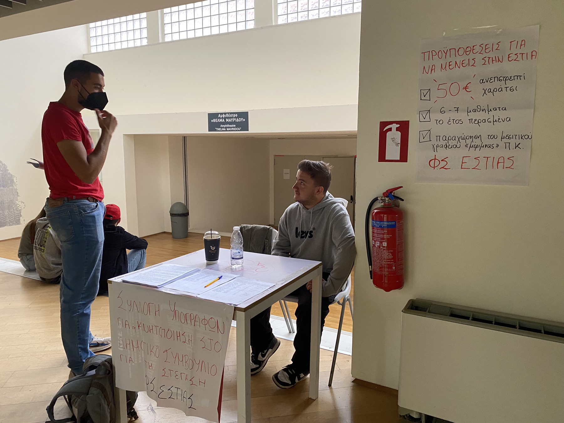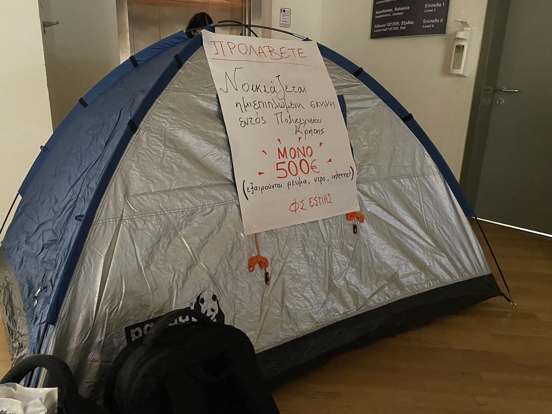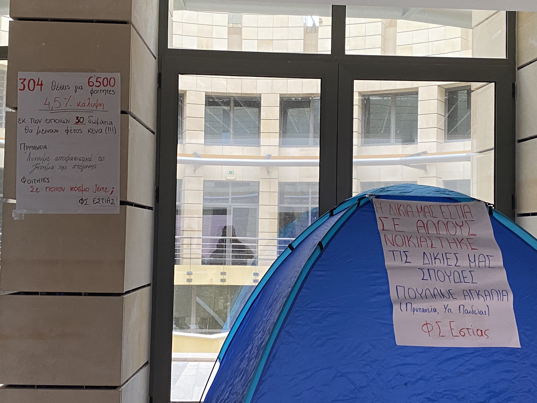 Εμείς κάνουμε ξεκάθαρο από μεριάς μας, πως δεν θα αφήσουμε κανέναν και καμία που έχει δικαίωμα στις σπουδές και χρειάζεται δωμάτιο στο έλεος των συνθηκών που έχει φτιάξει η κυβέρνηση, το υπουργείο παιδείας και η πρυτανεία.