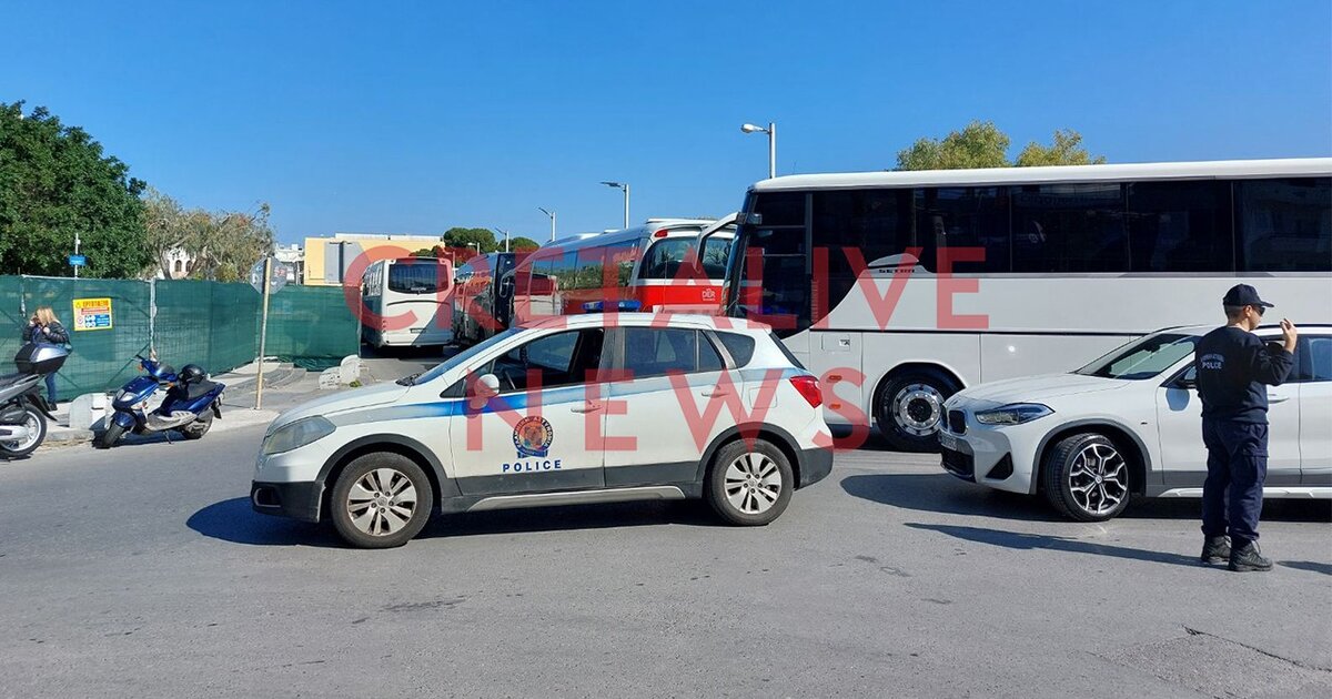 Με αφετηρία το Αεροδρόμιο του Ηρακλείου τα λεωφορεία έφτασαν στην Πλατεία Ελευθερίας, που ήταν και τελικός "προορισμός".