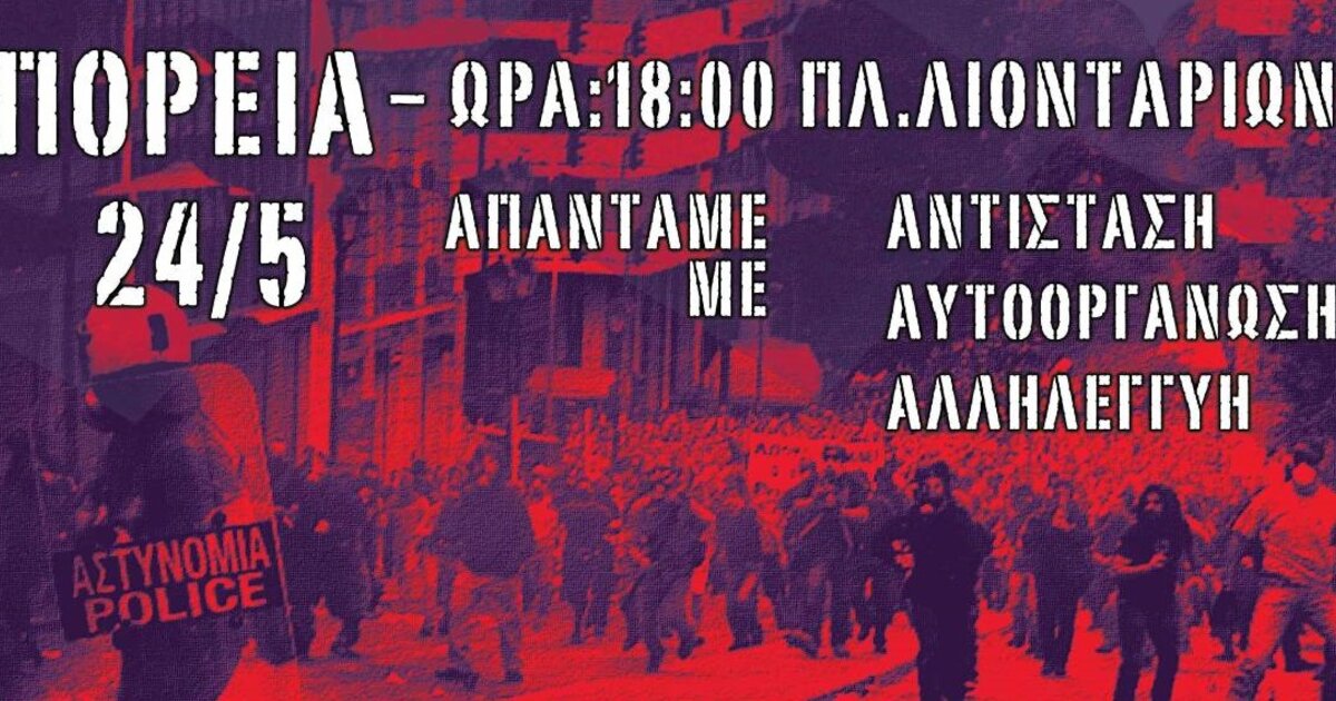 Συγκέντρωση και πορεία διοργανώνουν το απόγευμα της ερχόμενης Παρασκευής 24 Μαΐου 2024 στα Λιοντάρια, συλλογικότητες. Η κινητοποίηση με κεντρικό σύνθημα "Ενάντια στην υποτίμηση των ζωών μας" έχει προγραμματιστεί για τις 18:00. Στη σχετική ανακοίνωση των διοργανωτών επισημαίνονται τα εξής: