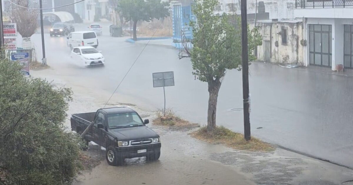 Έντονες βροχοπτώσεις στην ενδοχώρα του Ηρακλείου και σε άλλες περιοχές του νησιού