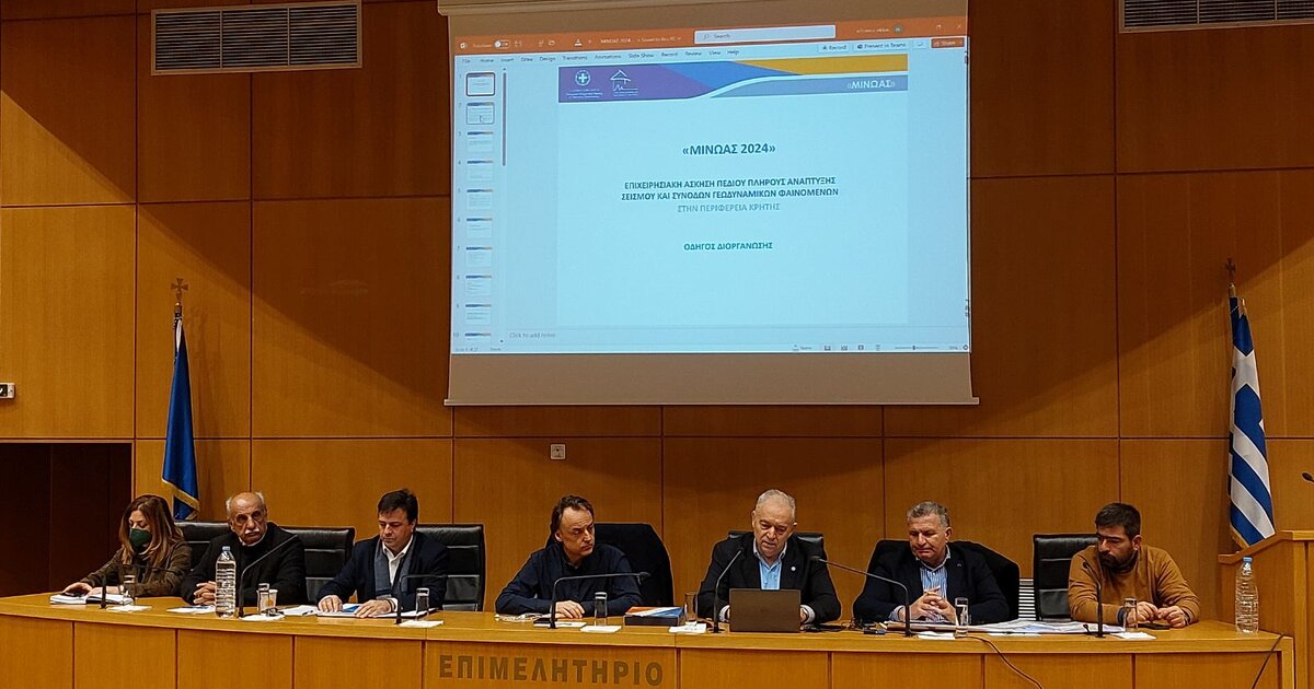 Αναλυτικά έγινε ενημέρωση για τη διεξαγωγή της επιχειρησιακής άσκησης πεδίου με σκοπό την αντιμετώπιση μεγάλου Σεισμού και Συνοδών Γεωδυναμικών Φαινομένων στην Κρήτη με την κωδική ονομασία «ΜΙΝΩΑΣ».