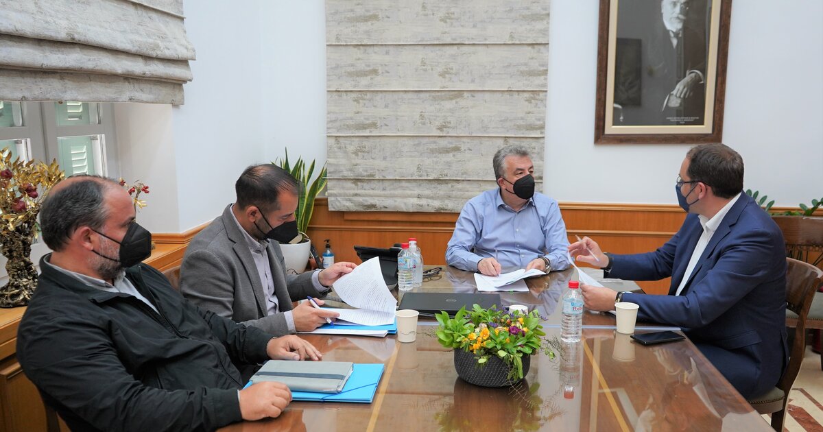 Η τριμερής προγραμματική σύμβαση μεταξύ Περιφέρειας Κρήτης, Δήμου Ανωγείων και «ΔΑΙΔΑΛΟΣ Α.Ε.-Αναπτυξιακός Οργανισμός Τοπικής Αυτοδιοίκησης» για το έργο «Επικαιροποίηση μελετών για τη δημιουργία πολιτιστικού πάρκου δήμου Ανωγείων» συνυπέγραψαν σήμερα ο Περιφερειάρχης Κρήτης Σταύρος Αρναουτάκης, ο Δήμαρχος Ανωγείων Σωκράτης Κεφαλογιάννης και ο Πρόεδρος της «ΔΑΙΔΑΛΟΣ Α.Ε.»-Περιφερειακός Σύμβουλος Κώστας Φασουλάκης.