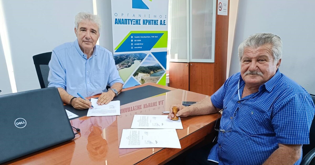 Στην υπογραφή της Προγραμματικής Σύμβασης που αφορά την υλοποίηση του έργου «ΑΝΟΡΥΞΗ ΕΡΕΥΝΗΤΙΚΗΣ ΚΑΙ ΠΑΡΑΓΩΓΙΚΗΣ ΓΕΩΤΡΗΣΗΣ ΣΤΗ Τ.Κ. ΙΜΠΡΟΥ ΔΗΜΟΥ ΣΦΑΚΙΩΝ», προχώρησαν, ο Διευθύνων Σύμβουλος του Οργανισμού Ανάπτυξης Κρήτης και ο Δήμαρχος Σφακίων, κ. Μανούσος Χιωτάκης.