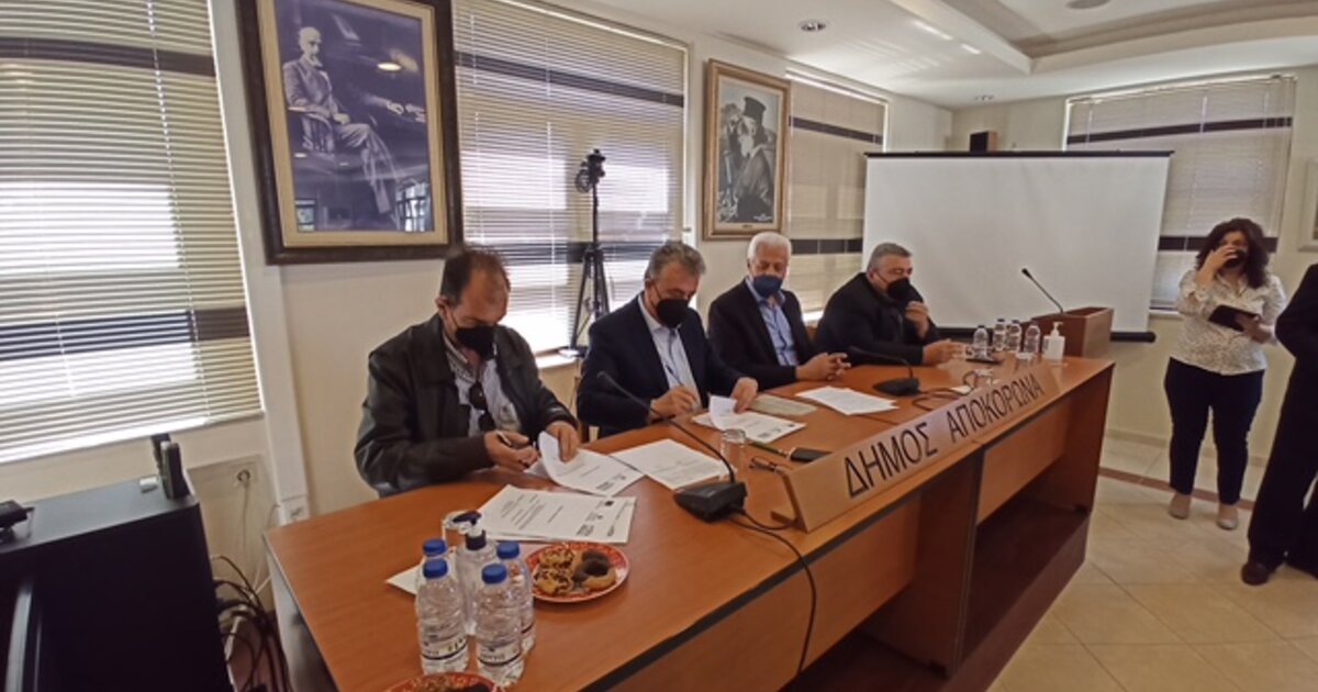 «Αποτελεί μία ξεχωριστή ημέρα σήμερα για τον Αποκόρωνα η υπογραφή της σύμβασης με τον ανάδοχο για την ολοκλήρωση του βιολογικού και των δικτύων εδώ του δήμου Αποκόρωνα.Είναι ένα έργο το οποίο φτάνει τα 26 εκατομμύρια που μέσα από τη συνεργασία που είχαμε με τη δημοτική αρχή μπορέσαμε και εντάξαμε αυτό το έργο στο περιφερειακό μας πρόγραμμα. Ένα έργο που είχε ξεκινήσει και είχε ενταχθεί στο ΥΜΕΠΕΡΑ του υπουργείου περιβάλλοντος δυστυχώς απεντάχθηκε τέλος του 2012.Εμείς είδαμε την αναγκαιότητα ότι το έργο αυτό για την ευρύτερη περιοχή πρέπει να γίνει και το εντάξαμε στο περιφερειακό μας πρόγραμμα, με δυσκολίες με νέες μελέτες, με επικαιροποίηση των μελετών.