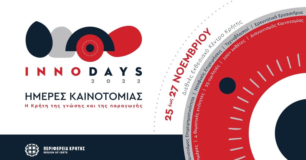 Η Περιφέρεια Κρήτης διοργανώνει τριήμερο με αναφορά στην Καινοτομία και το οικοσύστημα της Περιφέρειας Κρήτης, με τίτλο InnoDays 2022 .