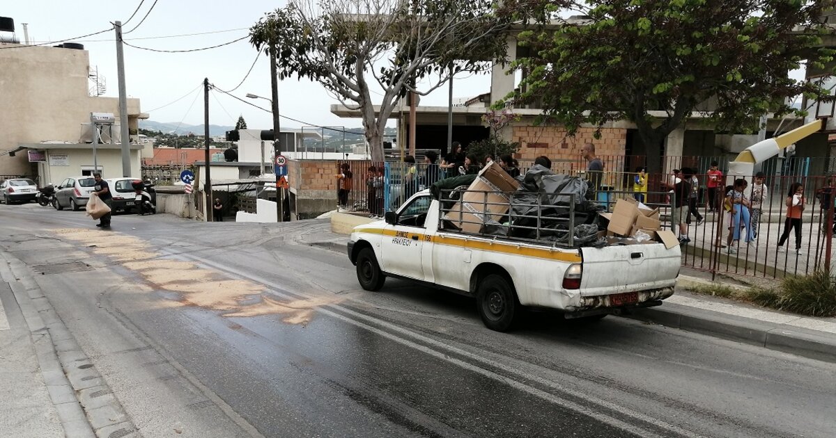 Λάδια στην οδό Παπαγιάννη Σκουλά, στο Ηράκλειο έπεσαν πριν τις 10.00 το πρωί, εξαιτίας μηχανικής βλάβης σε φορτηγό που μετέφερε οικοδομικά υλικά.