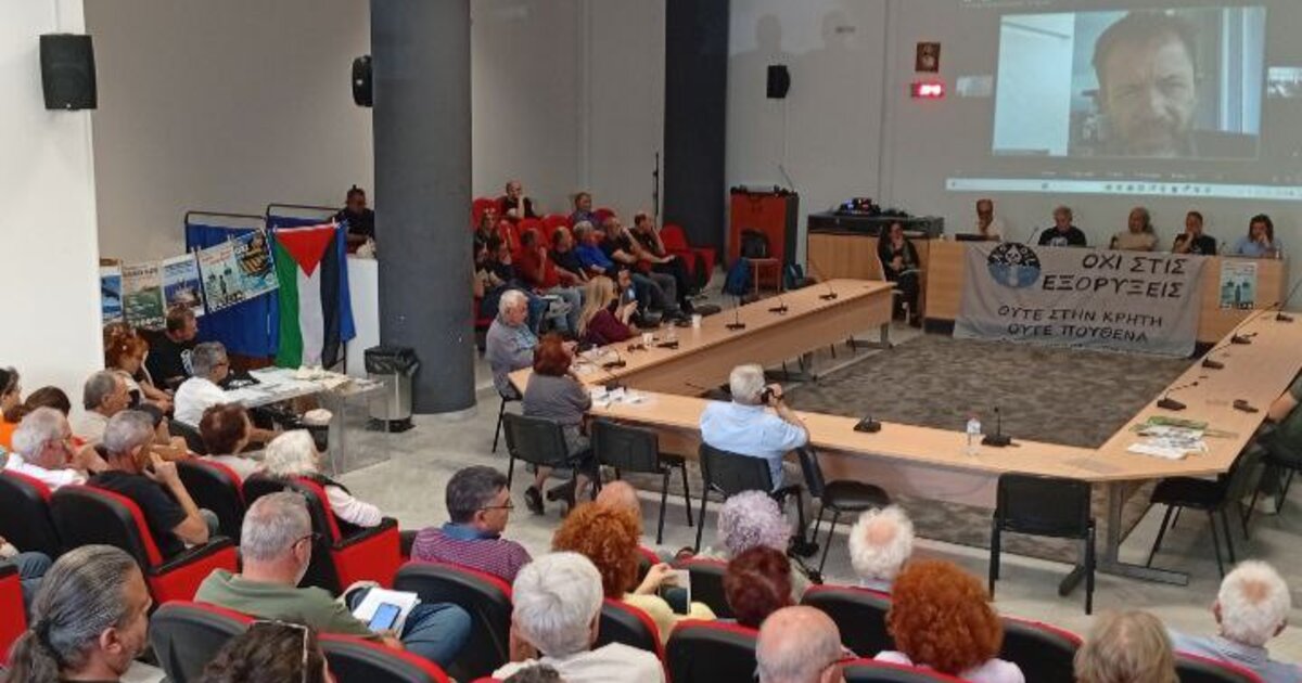 "Με μεγάλη επιτυχία στέφθηκε η εκδήλωση «Περιβάλλον, υγεία, ειρήνη, τουρισμός, αλιεία, οικονομία, θυσία στον βωμό των εξορύξεων;» που έγινε την Κυριακή 11 Μαΐου 2025 στην αίθουσα του Δημοτικού Συμβουλίου της Ιεράπετρας. Οι άκρως ενδιαφέρουσες ενημερωτικές παρουσιάσεις των ομιλητών για τις σοβαρές περιβαλλοντικές, οικονομικές, κοινωνικές και γεωπολιτικές επιπτώσεις της εξόρυξης ορυκτού αερίου και πετρελαίου, αποκάλυψαν την αλήθεια πίσω από το «αναπτυξιακό» αφήγημα των εξορύξεων και έκαναν ακόμα πιο ξεκάθαρο και δυνατό το μήνυμα: δεν αξίζει να πάρουμε αυτό το ρίσκο, ούτε στην Κρήτη, ούτε πουθενά!