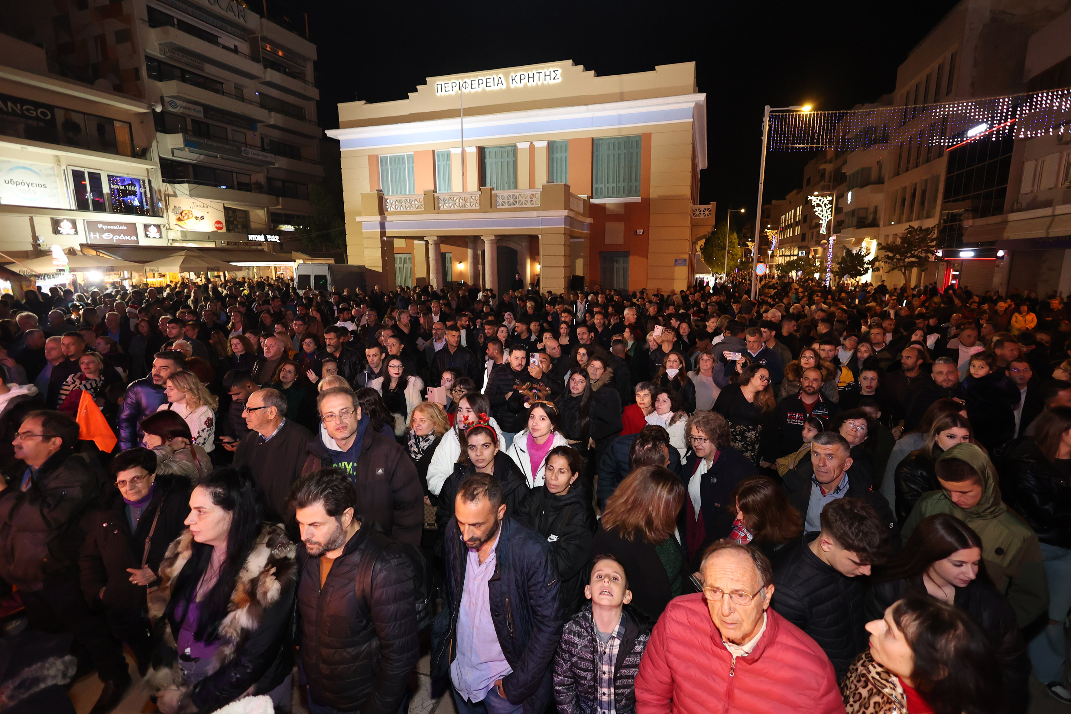 Με πλήθος κόσμου, γνωστά τραγούδια, πυροτεχνήματα και πολύ κέφι πραγματοποιήθηκε η αλλαγή του χρόνου στο Ηράκλειο, στην Πλατεία Ελευθερίας. Την αντίστροφη μέτρηση για την έλευση του 2024 έδωσαν μαζί ο απερχόμενος Δήμαρχος Βασίλης Λαμπρινός και ο νέος Δήμαρχος Αλέξης Καλοκαιρινός.