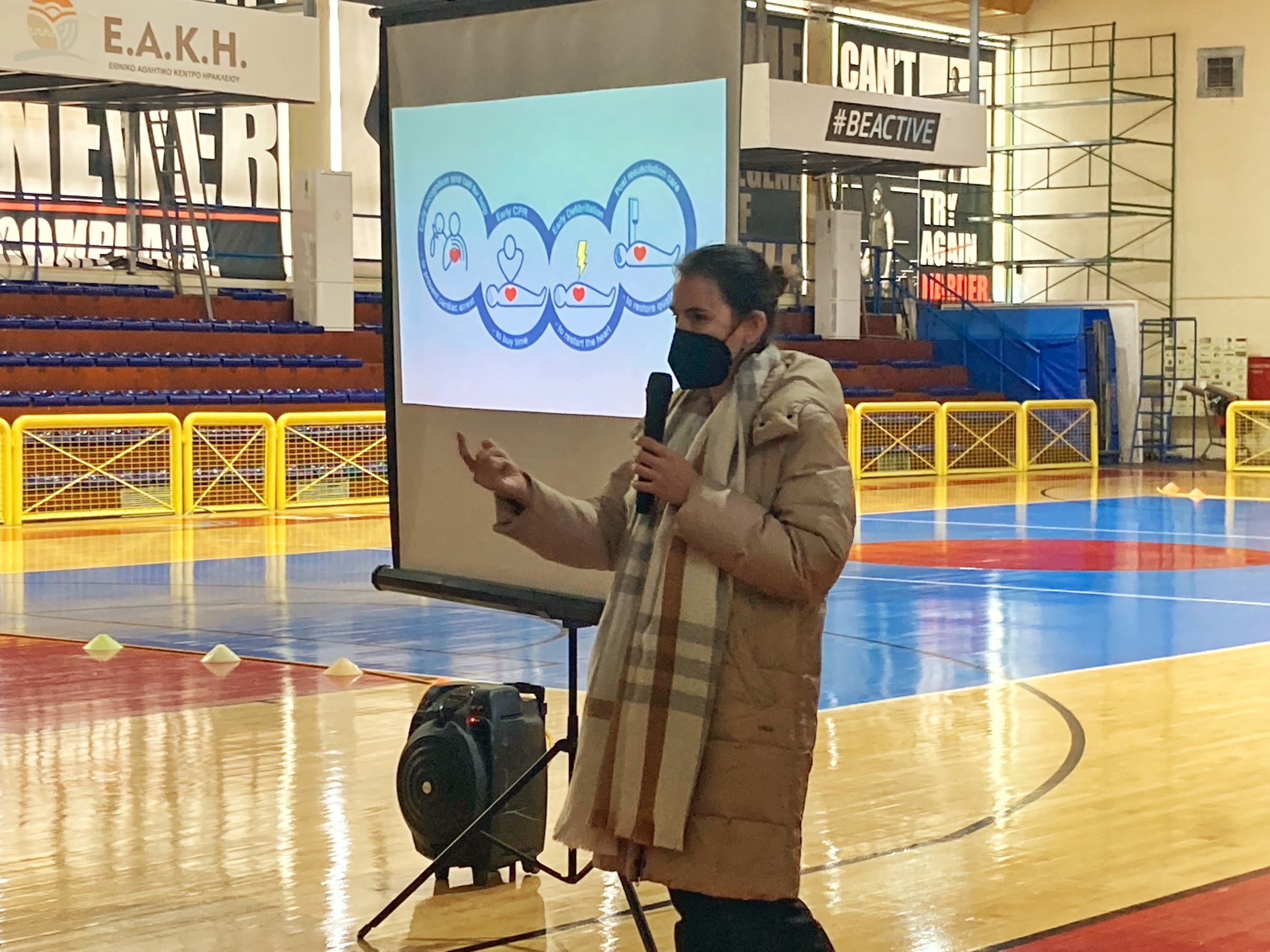 Οι συμμετέχοντες εκπαιδευτικοί φυσικής αγωγής ενημερώθηκαν για τους στόχους του προγράμματος, που αφορούν στον εξοπλισμό όλων των αδειοδοτημένων αθλητικών χώρων της Κρήτης με σύγχρονους αυτόματους εξωτερικούς απινιδωτές και στην οριζόντια εκπαίδευση των γυμναστών (αποφοίτων ΤΕΦΑΑ) στην καρδιοπνευμονική αναζωογόνηση.
