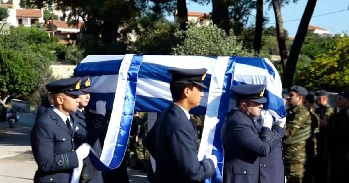 Το «παρών» έδωσε η Πρόεδρος της Δημοκρατίας, Κατερίνα Σακελλαροπούλου - Tυλιγμένο με την Γαλανόλευκη το φέρετρο με τη σορό του πιλότου