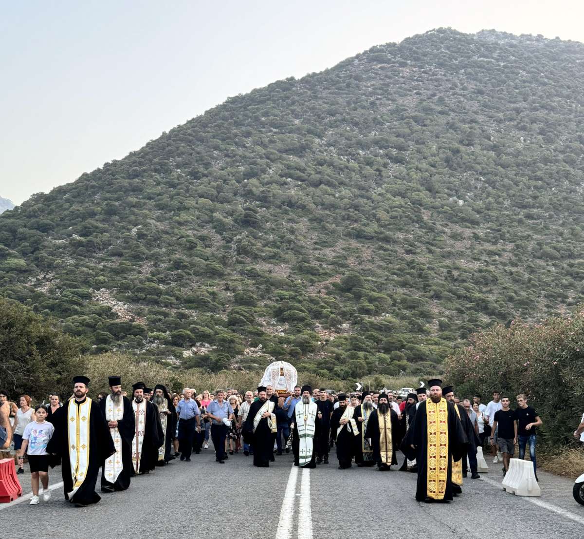 Της Ιεράς Λιτανευτικής Πομπής προέστη ο Σεβασμιώτατος Μητροπολίτης Ρεθύμνης και Αυλοποτάμου κ. Πρόδρομος, συμπαραστατούμενος υπό του Πρωτοσυγκέλλου αυτού και Καθηγουμένου της Ιεράς Μονής Τιμίου Προδρόμου Ατάλης-Μπαλή, Πανοσιολ. Αρχιμ. Παρθενίου Καλυβιανάκη, του Πρωτοσυγκέλλου της Ιεράς Μητροπόλεως Λάμπης, Συβρίτου και Σφακίων, Πανοσιολ. Αρχιμ. Αθανασίου Καραχάλιου, του Καθηγουμένου της Ιεράς Πατριαρχικής και Σταυροπηγιακής Μονής Μεταμορφώσεως του Σωτήρος Χαλέπας, Πανοσιολ. Αρχιμ. Πορφυρίου Αουάντ, και κληρικών της Ιεράς Μητροπόλεως Ρεθύμνης και Αυλοποτάμου.