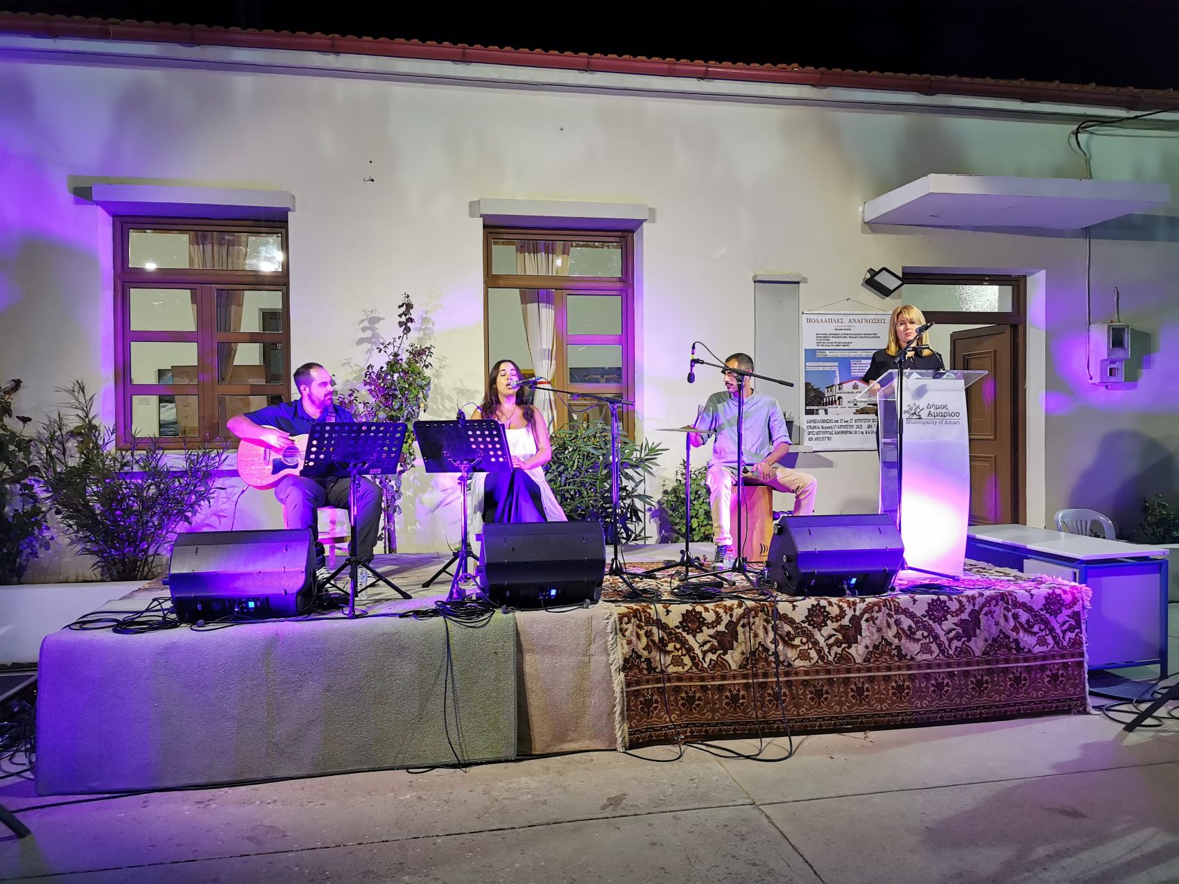 Την εκδήλωση πλαισίωσαν μουσικά με μοναδικό τρόπο η Ιωάννα Καβρουλάκη στο τραγούδι, ο Δημήτρης Μπασδάνης στην κιθάρα και ο Χριστόφορος Πιτσιδήμος στα κρουστά.