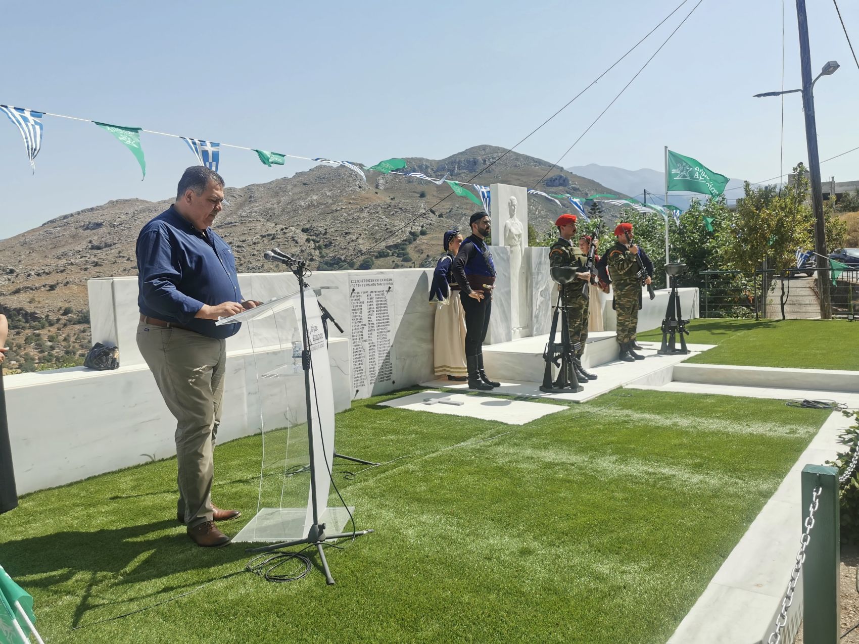Στο σύντομο χαιρετισμό του, ο Δήμαρχος Αμαρίου κ. Παντελής Μουρτζανός τόνισε: «Ογδόντα ένα χρόνια συμπληρώνονται σήμερα από τη μαύρη, τραγική και καταραμένη εκείνη ημέρα του Αυγούστου. Τα χωριά μας παραδόθηκαν στη φωτιά, τον όλεθρο και τη βαρβαρότητα. Ήταν η στιγμή που ο πολιτισμός υποχώρησε μπροστά στη θηριωδία. Οι καμπάνες σώπασαν, τα σπίτια σωριάστηκαν στις φλόγες, οι αυλές ερήμωσαν, το αίμα των αθώων πότισε τη γη του Κέντρους. Δεν ήταν μια πολεμική πράξη· ήταν ένα καλά οργανωμένο έγκλημα με στόχο τον αφανισμό της αξιοπρέπειας, της αντίστασης, της ίδιας της ζωής. Κι όμως, μέσα από τις στάχτες, τα χωριά μας αναστήθηκαν. Η μνήμη δεν έσβησε· έγινε μνημείο και προσευχή, σμιλεύτηκε στην πέτρα, τραγουδήθηκε από τον λαό, γράφτηκε στην ιστορία.»