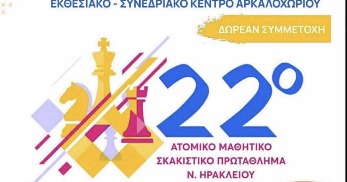 Αντίστροφη μέτρηση για το 22ο Ατομικό Μαθητικό Σκακιστικό Πρωτάθλημα Νομού Ηρακλείου που θα πραγματοποιηθεί το Σάββατο 28 Φεβρουαρίου και την Κυριακή 1 Μαρτίου 2026, στο Εκθεσιακό – Συνεδριακό Κέντρο Αρκαλοχωρίου.