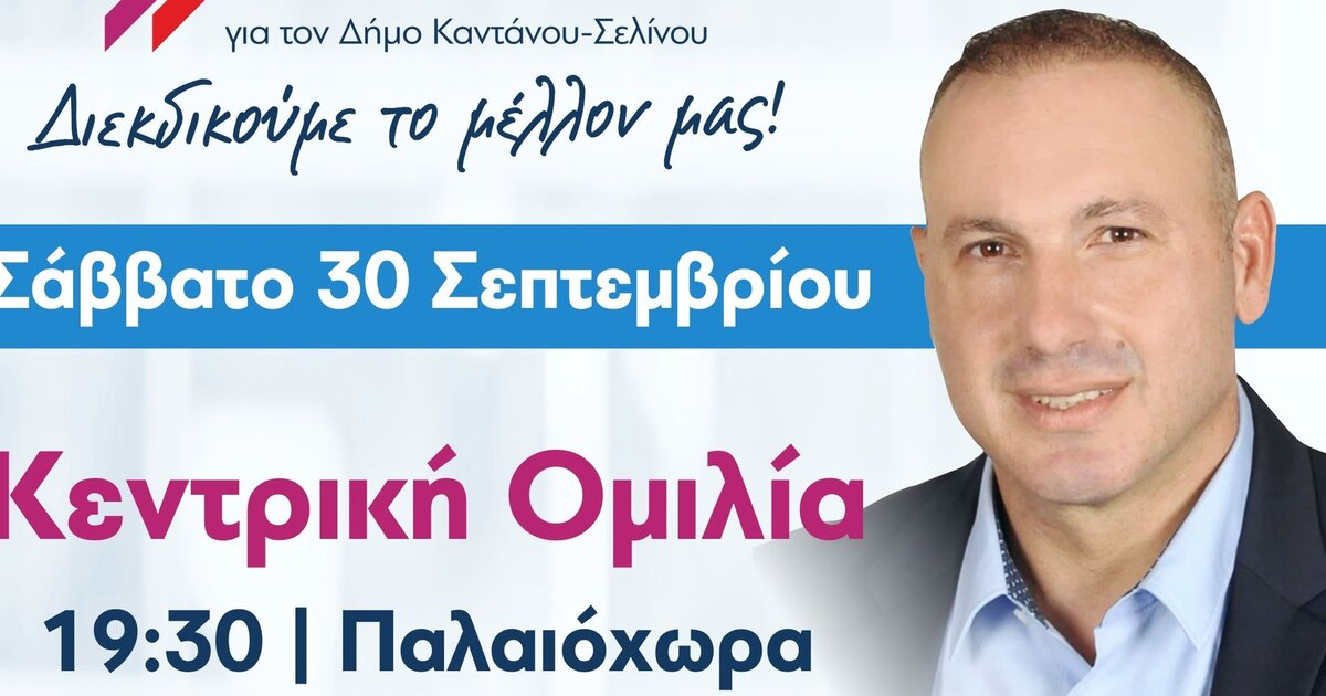 Την κεντρική προεκλογική του εκδήλωση πραγματοποιεί το Σάββατο 30 Σεπτεμβρίου ο Υποψήφιος Δήμαρχος Καντάνου-Σελίνου Ν.Χανίων, Ευτύχης Δαμηλάκης.
