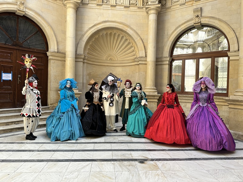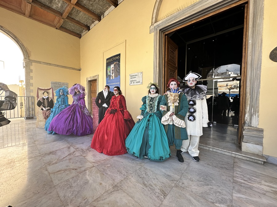 Στο πλαίσιο των Αποκριάτικων δράσεων, σπουδαστές της Δραματικής Σχολής "ΝΟΤΟΣ" παρουσίασαν στους δρόμους του Ηρακλείου ""μασκαράδες" με κοστούμια από τη Βενετσιάνικη συλλογή του από το πρωί έως το μεσημέρι.