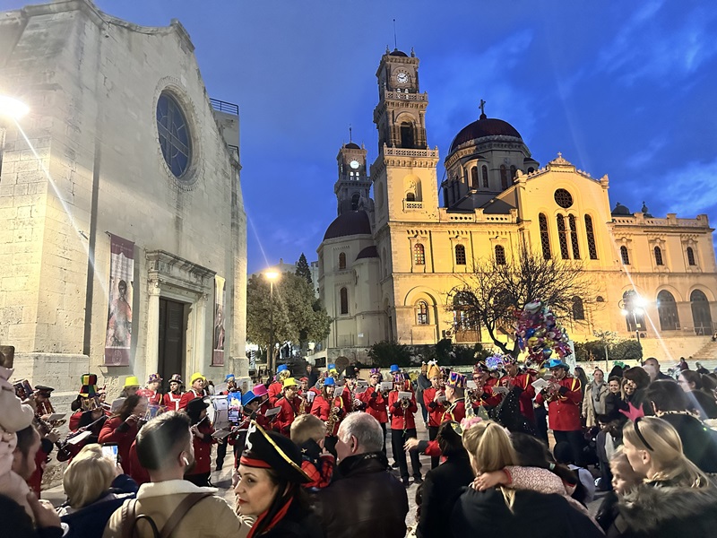 Το απόγευμα της Τσικνοπέμπτης, η Φιλαρμονική Ορχήστρα του Δήμου Ηρακλείου υπό την διεύθυνση του μουσικού Βαγγέλη Τσαγκαράκη, παιάνισε διασκεδάζοντας τον κόσμο που βρέθηκε στο κέντρο της πόλης, αποκριάτικες μελωδίες. Η μουσική διαδρομή ξεκίνησε από τα σκαλάκια της Πλατείας Δασκαλογιάννη. Την Φιλαρμονική συνάντησαν οι Ηρακλειώτες αλλά και οι επισκέπτες της πόλης, κατά τη διάρκεια της μουσικής της βόλτας και στις Πλατείες Ελευθερίας, Λιονταριών, Αγίας Αικατερίνης, Νικηφόρου Φωκά (Φιξ) κτλ.Παράλληλα στο αίθριο της Βασιλικής του Αγίου Μάρκου, καθόλη τη διάρκεια των Απόκρεων μπορούν όλοι να θαυμάσουν τις διακοσμητικές κούκλες και μάσκες από το μουσείο Καζαντζάκη, το όποιο ο Δήμος ευχαριστεί θερμά για τον δανεισμό τους.