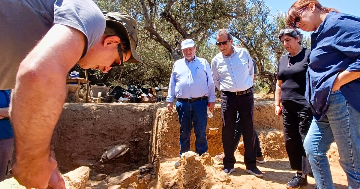 Ο Δήμαρχος Χερσονήσου κ. Ζαχαρίας Δοξαστάκης, συνοδεύονταν από τον Δήμαρχο Μινώα Πεδιάδος κ. Βασίλη Κεγκέρογλου κι αντιπροσωπεία του Δήμου, με τους επικεφαλής αρχαιολόγους, να μοιράζονται μαζί τους σημαντικές πληροφορίες για τα ευρήματα που αποκαλύπτουν πτυχές μιας σχετικά άγνωστης ιστορικής περιόδου: του 5ου και 6ου αιώνα π.Χ. Σύμφωνα με την ενημέρωση που είχαν, από την έκταση και την ποιοτική αξία των ευρημάτων, προκύπτει ότι οι ανασκαφές αναδεικνύουν μια ευρύτερη περιοχή ισοδύναμης σημασίας με εκείνη ενός Ανακτόρου της Μινωικής περιόδου.