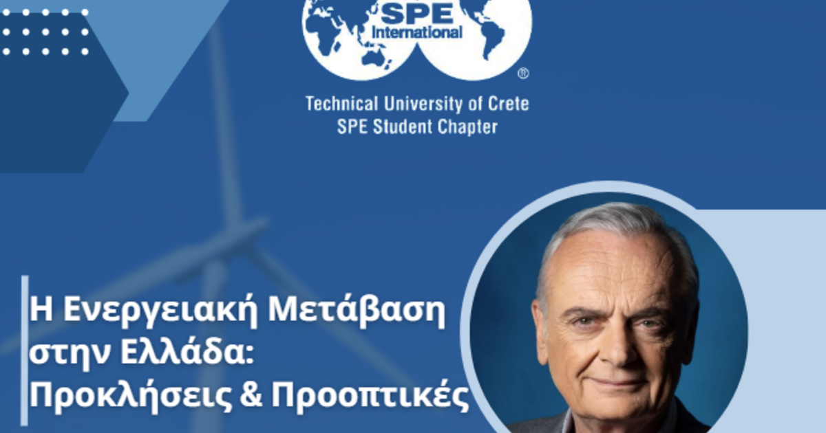 Το Φοιτητικό Παράρτημα της Διεθνούς Κοινότητας Μηχανικών Πετρελαίου SPE (Society of Petroleum Engineers) του Πολυτεχνείου Κρήτης, τη Δευτέρα 15 Απριλίου 2024 φιλοξένησε τον κ. Αριστοτέλη Αϊβαλιώτη, Γενικό Γραμματέα Ενέργειας και Ορυκτών Πρώτων Υλών του Υπουργείου Περιβάλλοντος και Ενέργειας.