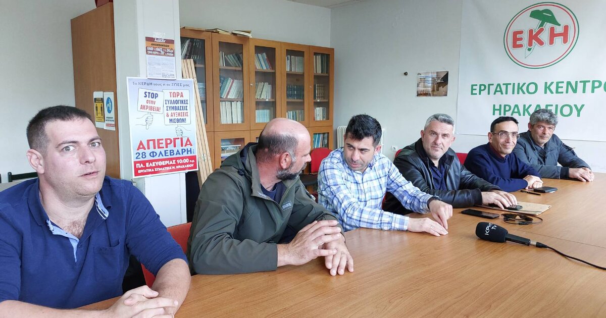 Κάλεσμα για μαζική κινητοποίηση στην πανεργατική απεργία, που θα πραγματοποιηθεί την Τετάρτη 28 Φεβρουαρίου, απευθύνουν σωματεία και φορείς του Ηρακλείου.