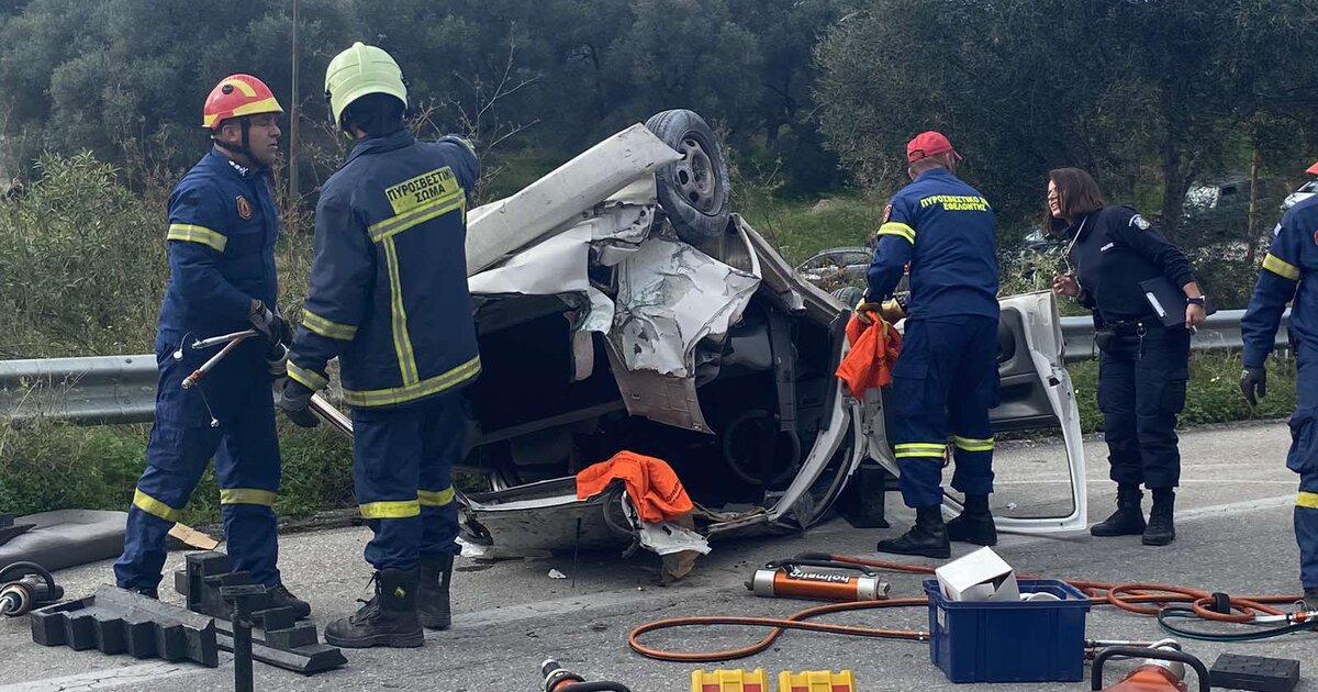 Εγκλωβισμός δύο ατόμων, μετά από τροχαίο στην εθνική - Βίντεο και φωτογραφίες