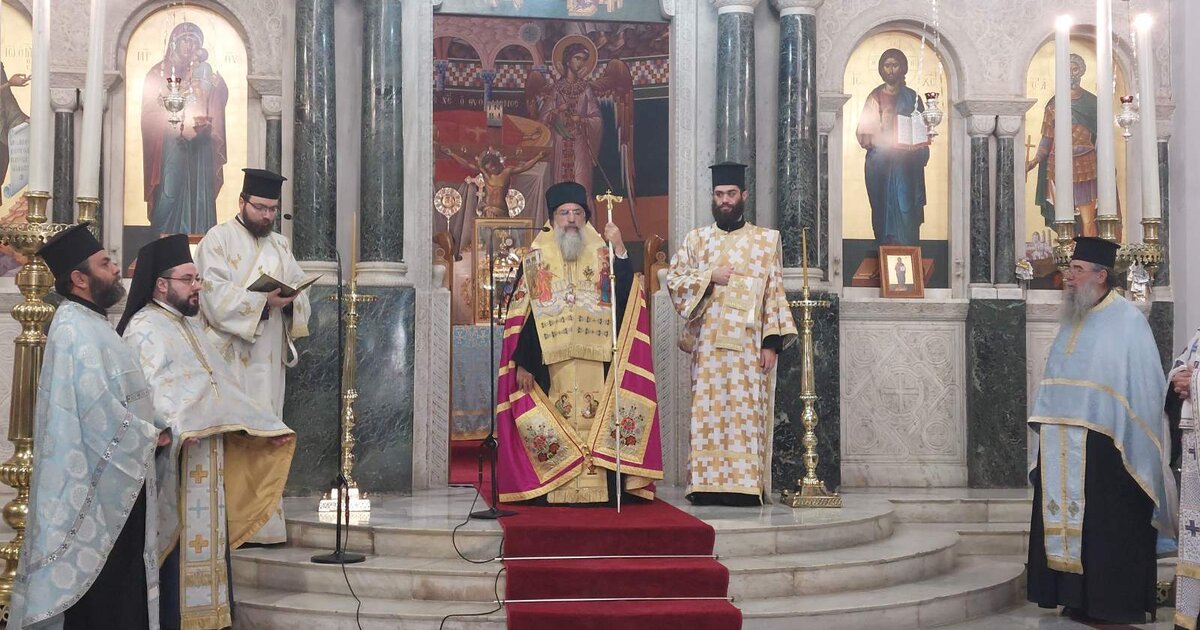 Κατάμεστος από εκπροσώπους τοπικών αρχών, φορέων και πλήθους κόσμου ήταν νωρίτερα ο Ιερός Μητροπολιτικός Ναός του Αγίου Μηνά, με φόντο τον εορτασμό της εθνικής επετείου της 25ης Μαρτίου και τον Ευαγγελισμό της Θεοτόκου.