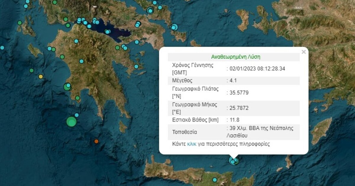 Σεισμική δόνηση 4,1 Ρίχτερ σημειώθηκε λίγo μετά τις 10 το πρωί κι έγινε αισθητή στην ανατολική Κρήτη.