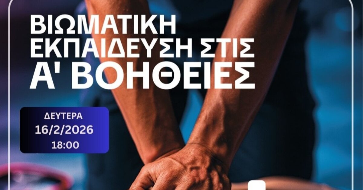 Το Γραφείο Τουρισμού του Δήμου Χανίων και η Επίλεκτη Ομάδα Ειδικών Αποστολών Χανίων (ΕΠΟΜΕΑ Χανίων) διοργανώνουν σεμινάριο Α’ Βοηθειών τη Δευτέρα 16/2/2026 στις 18:00 στο Κέντρο Αρχιτεκτονικής Μεσογείου (ΚΑΜ), στο Ενετικό Λιμάνι των Χανίων.