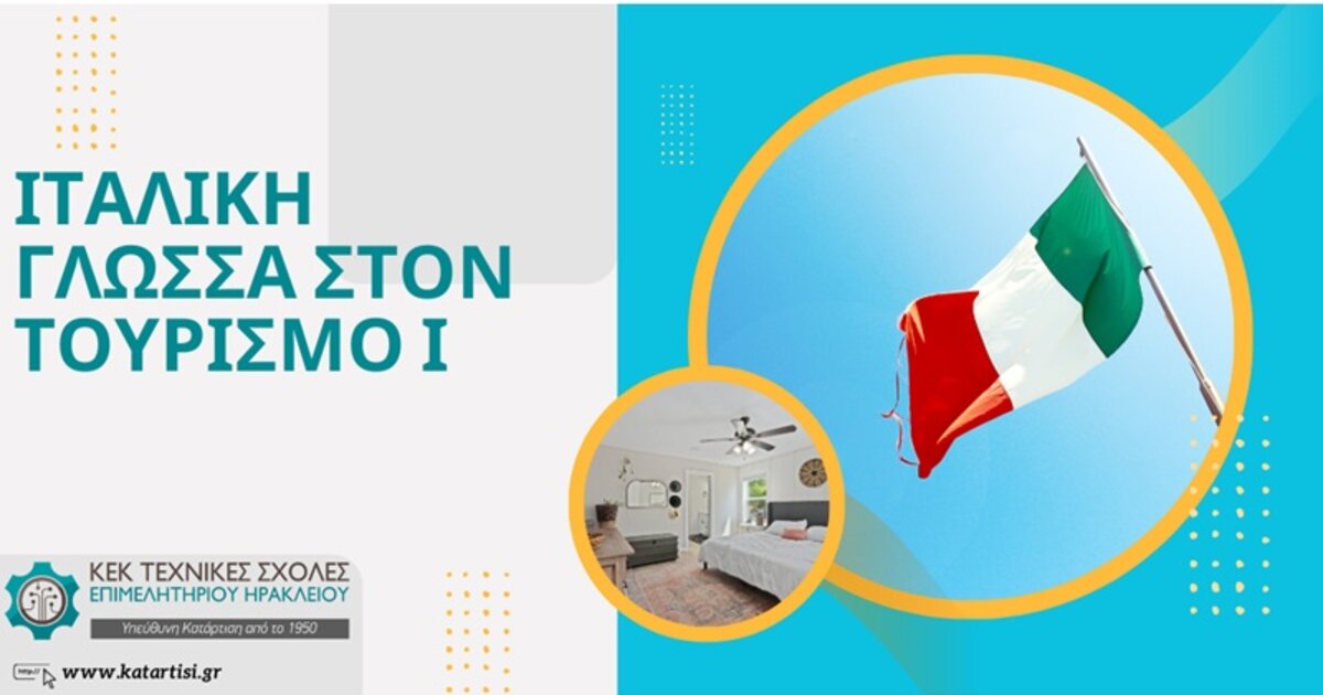 Έναν νέο κύκλο μαθημάτων, 30 ωρών αρχικού επιπέδου, για όσους επαγγελματίες του τουρισμού, όλων των ειδικοτήτων, επιθυμούν να επικοινωνούν με ευχέρεια στα ιταλικά στον χώρο της εργασίας τους, διοργανώνει το ΚΕΚ Τεχνικές Σχολές του Επιμελητηρίου Ηρακλείου.