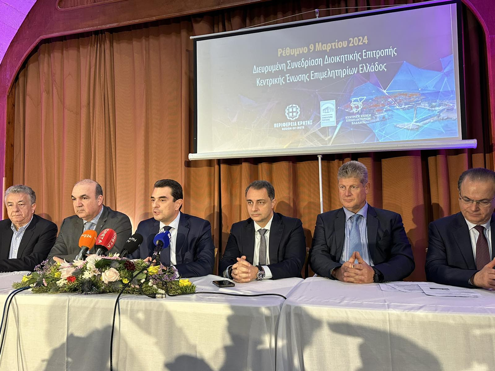 Στη διευρυμένη συνεδρίαση που πραγματοποιείται παρουσία του Υπουργού Ανάπτυξης, Κώστα Σκρέκα, μελών της κυβέρνησης και των προέδρων όλων των επιμελητηρίων της χώρας. Στο επίκεντρο βρίσκονται αναπτυξιακά ζητήματα της τοπικής οικονομίας. Οι στόχοι που τέθηκαν στο Ρέθυμνο είναι η ενίσχυση του τουρισμού, οι προοπτικές του εμπορικού λιμανιού και η λειτουργία του Βιοτεχνικού Πάρκου ως παράγοντα ανάπτυξης του τομέα μεταποίησης.