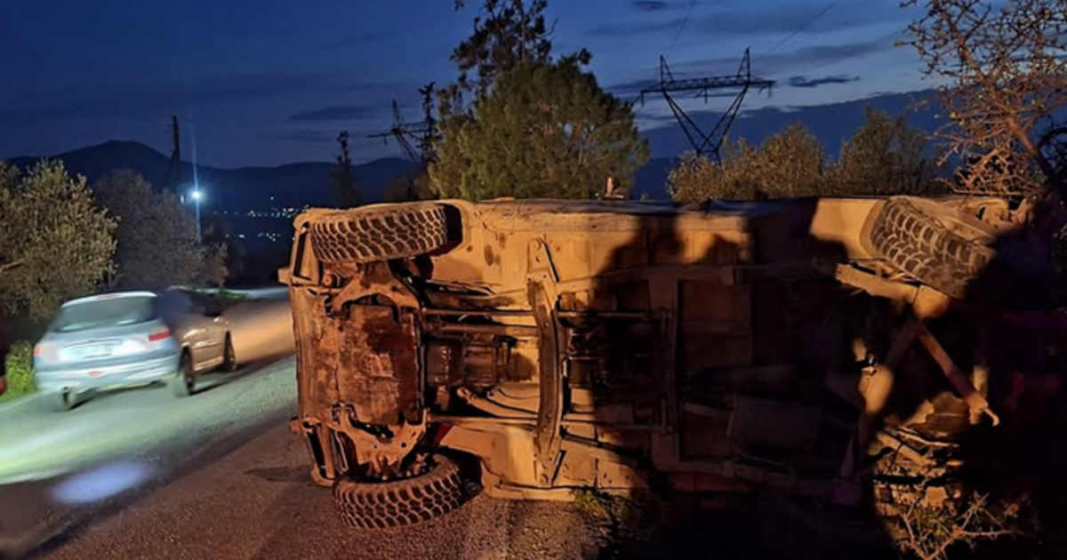 Σφοδρή σύγκρουση αγροτικού με τζιπ, ανετράπη το ένα όχημα